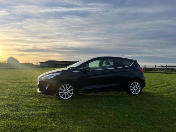 Great spec ford Fiesta titanium. Can has digital climate control, heated front seats, apple play, sat nav, heated steering wheel. Car has full service history and just been serviced and had its wet belt changed. Car will also have 12 months MOT and 6 months warranty. Finance and delivery available. VIEWING BY APPOINTMENT ONLY. This 2019 Ford Fiesta T Titanium offers an exceptional blend of efficiency and technology, making it a standout choice. Powered by a responsive 1.0L petrol engine, this Euro 6 compliant model boasts low CO2 emissions, contributing to a more environmentally conscious drive. The Titanium trim level ensures a well equipped experience, featuring Electronic Automatic Temperature Control (EATC) for effortless climate management, and rear parking distance sensors to aid manoeuvrability. You'll also appreciate the convenience of automatic headlights, which adjust their on-off function and even high beam settings for you. Further enhancing your journeys is the integrated Ford Navigation System, complete with Ford SYNC 3. This system seamlessly integrates with your smartphone, offering Apple CarPlay and Android Auto compatibility for easy access to your favourite apps and music. The FordPass Connect embedded modem adds further connectivity. With an acceleration of 0-62mph in just 10.6 seconds, this Fiesta T Titanium demonstrates a lively performance that surpasses many vehicles in its class, offering an engaging driving experience alongside its impressive fuel economy and advanced features.