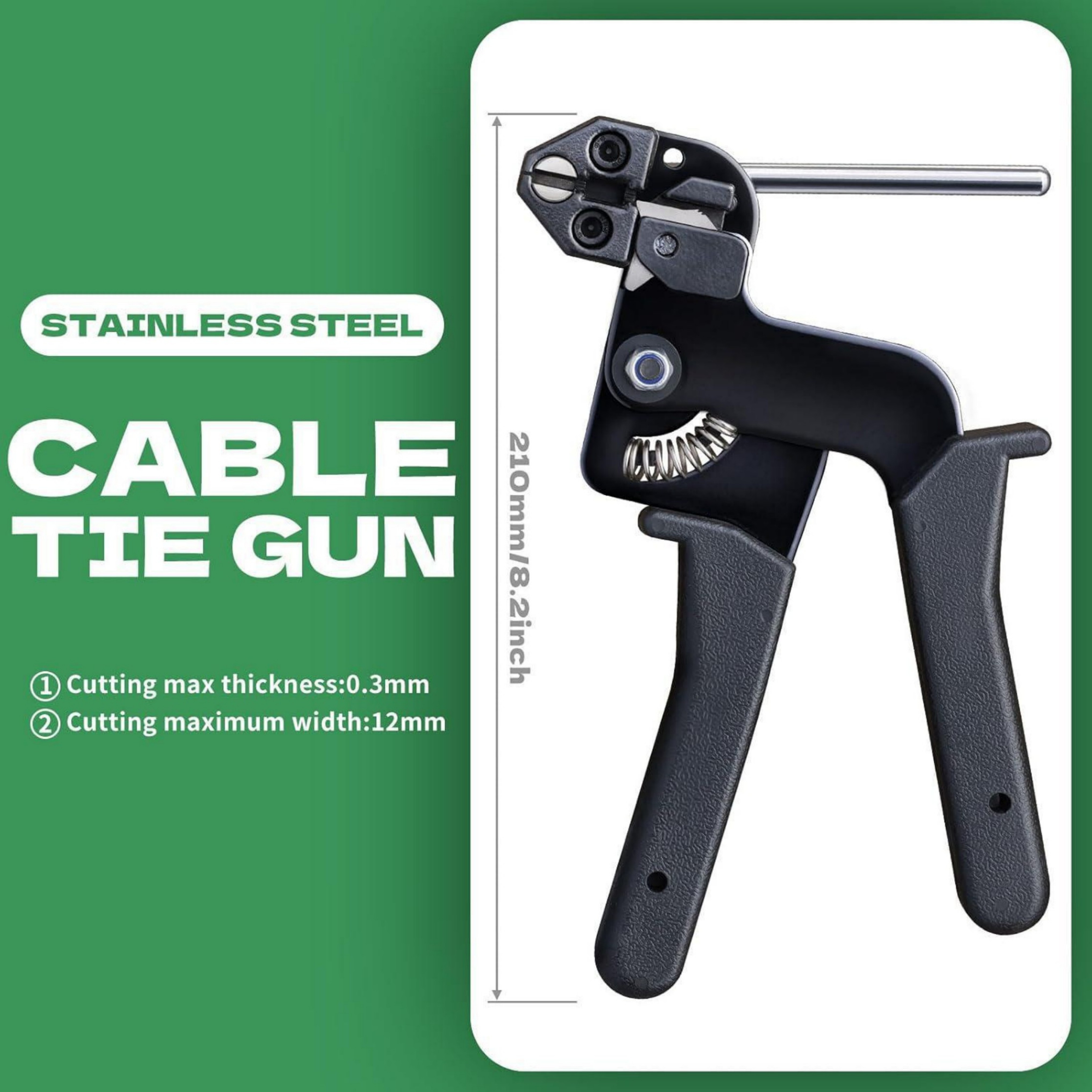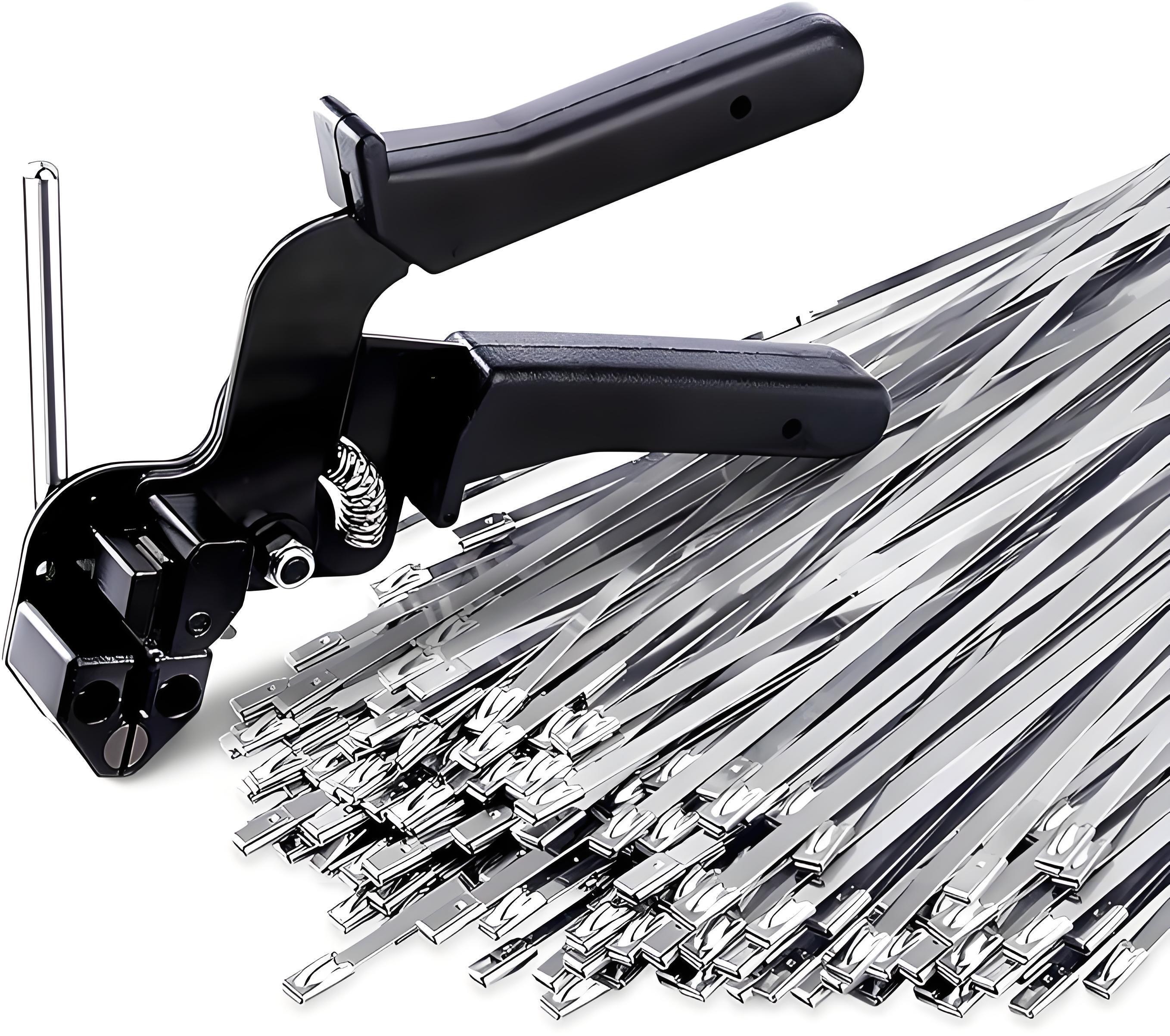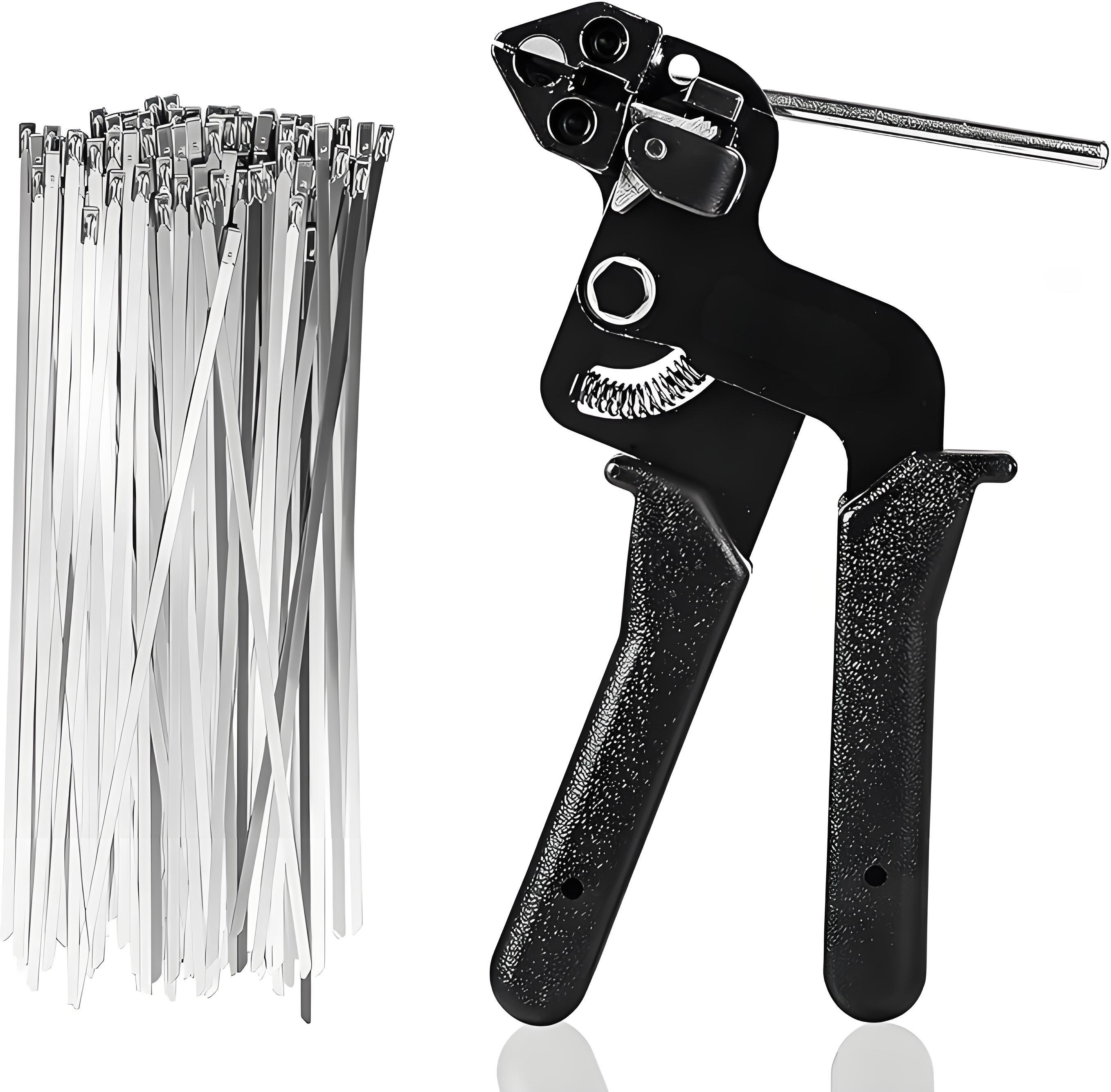 A special tool for fastening and cutting metal zip ties, equipped with 200 11.8 inch UV resistant heavy-duty zip ties, suitable for outdoor scenes such as fences and exhaust pipes