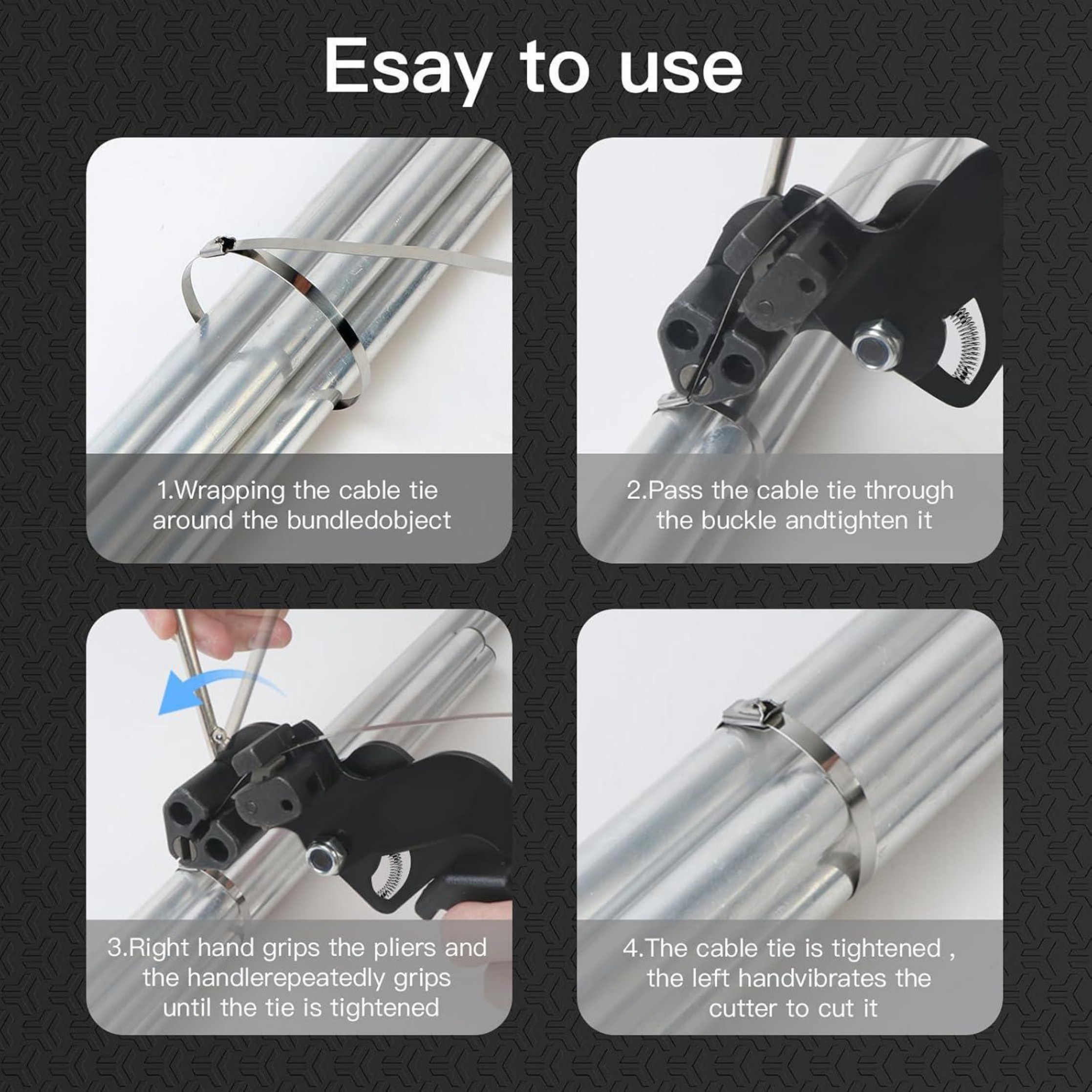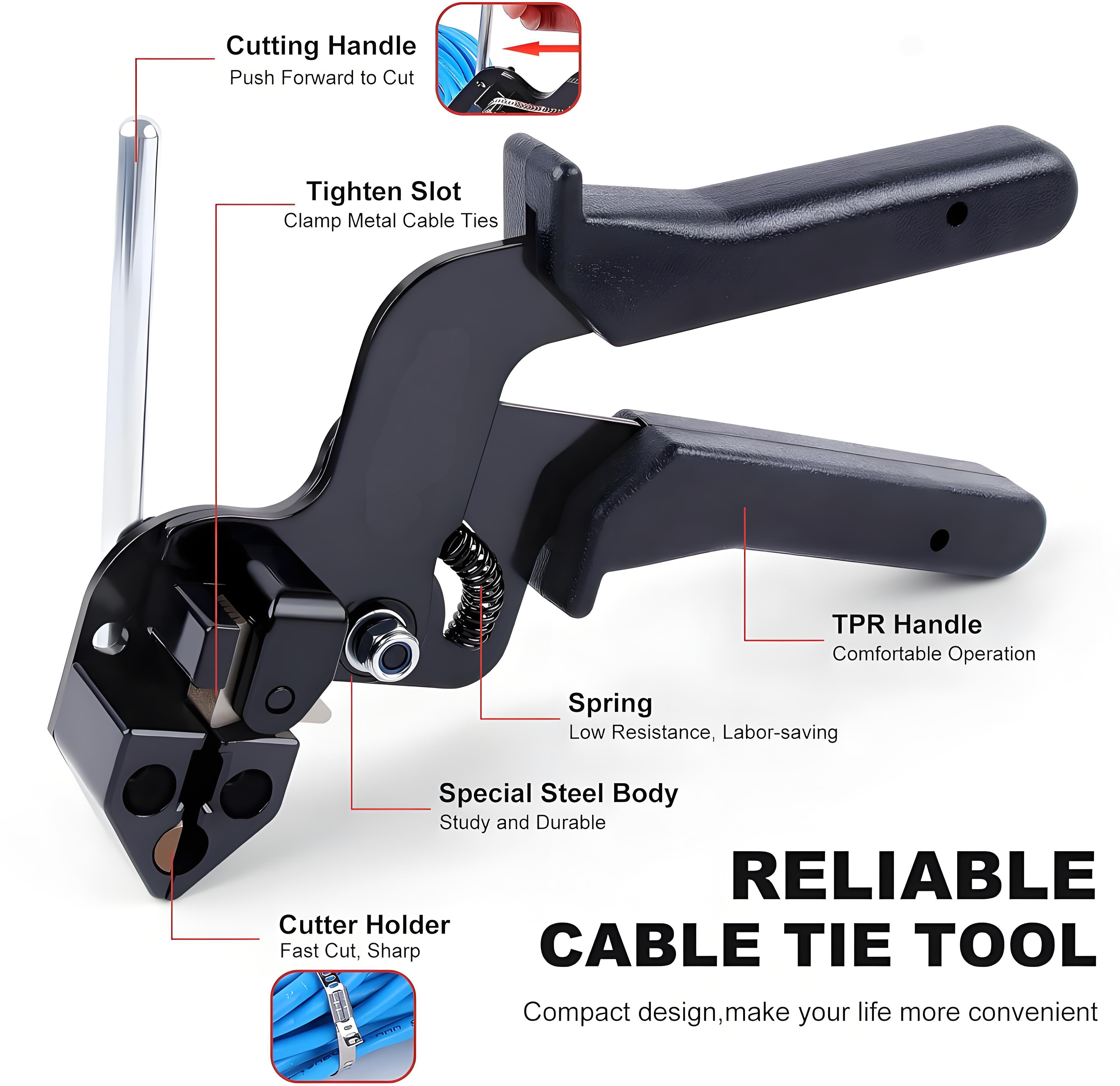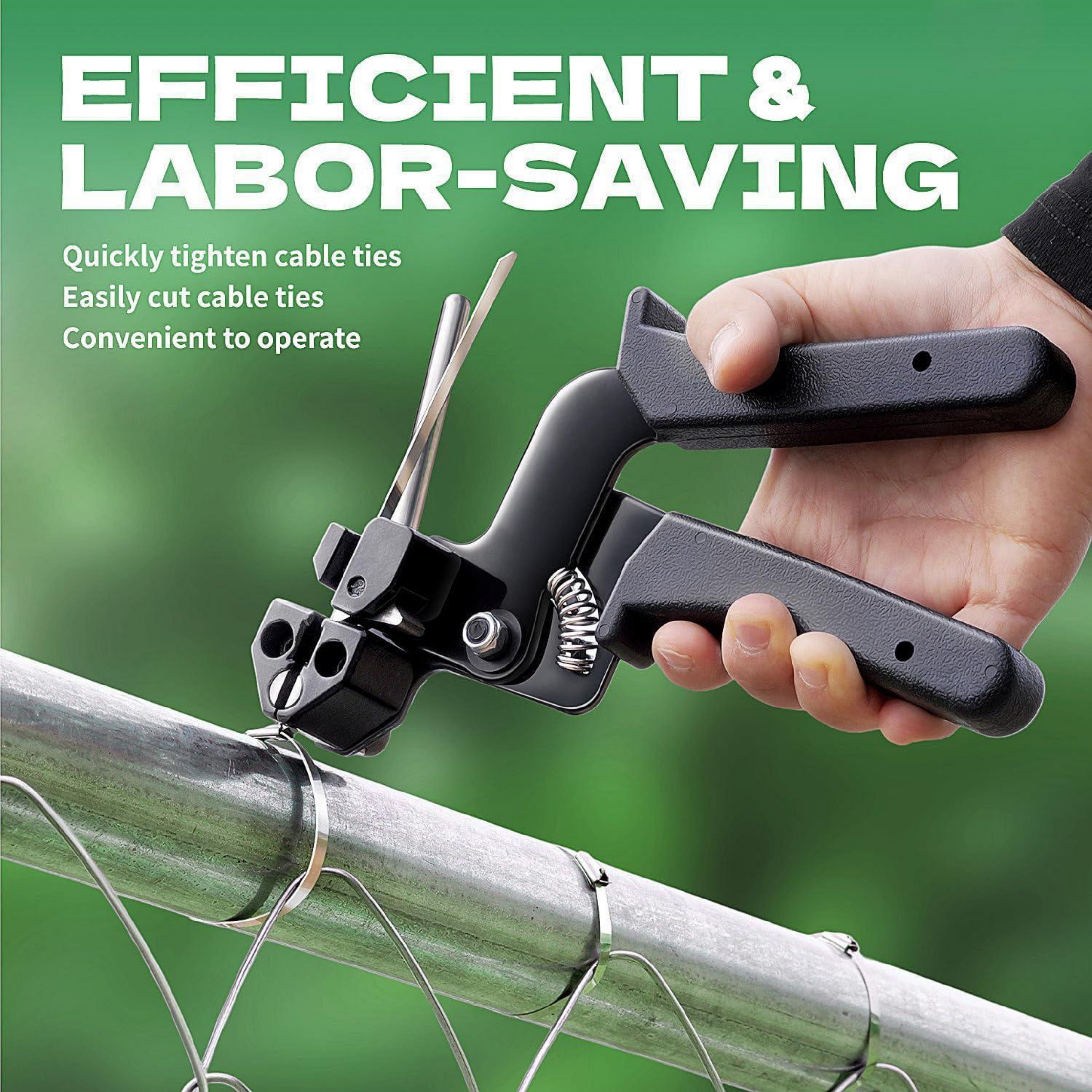 A special tool for fastening and cutting metal zip ties, equipped with 200 11.8 inch UV resistant heavy-duty zip ties, suitable for outdoor scenes such as fences and exhaust pipes