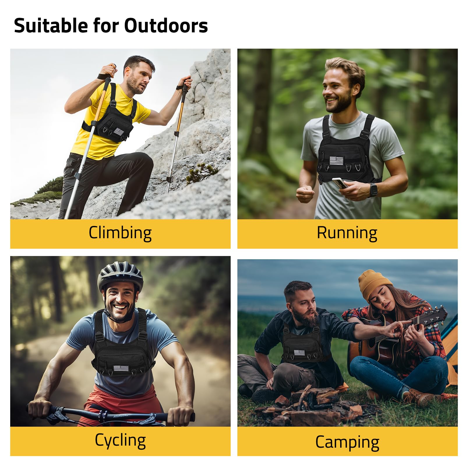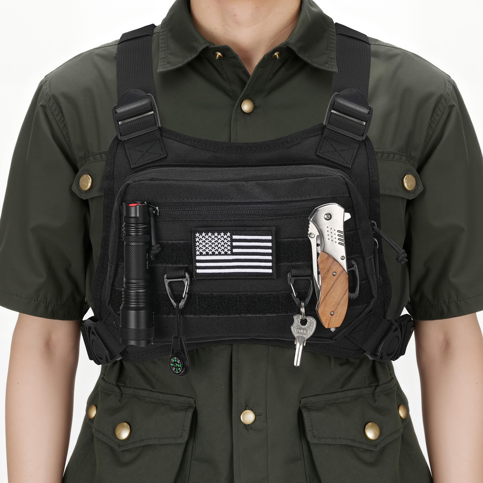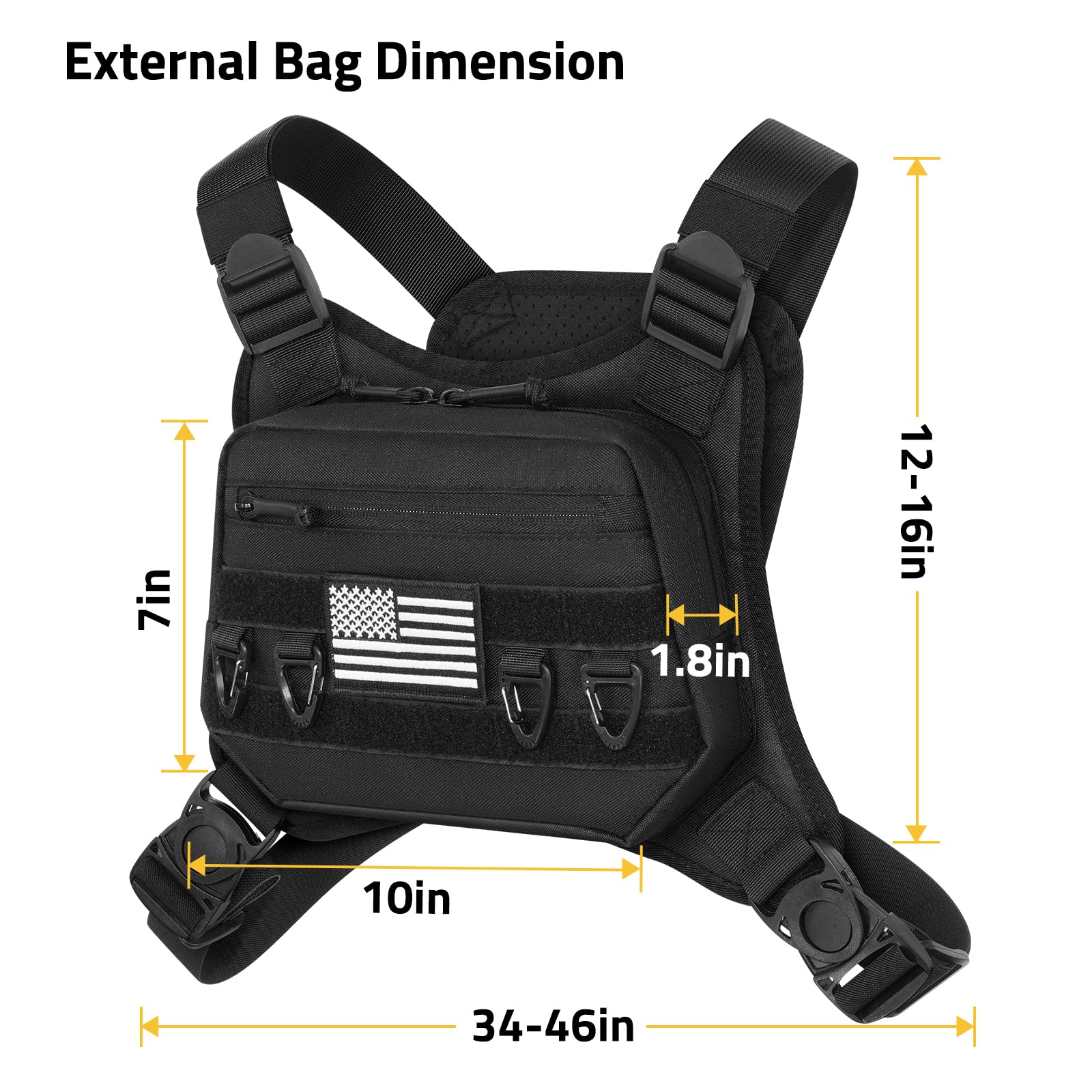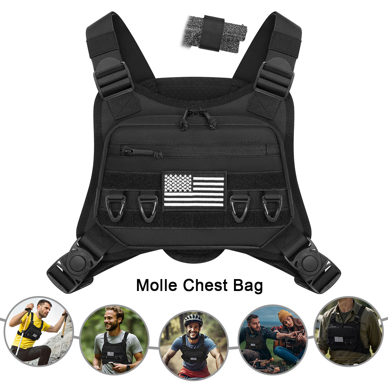 CVLIFE chest bag features large-capacity pockets. It is equipped with molle system and four hanging loops for storing items.Adjust the size of the chest pack to suit you. It won't bounce up and down.