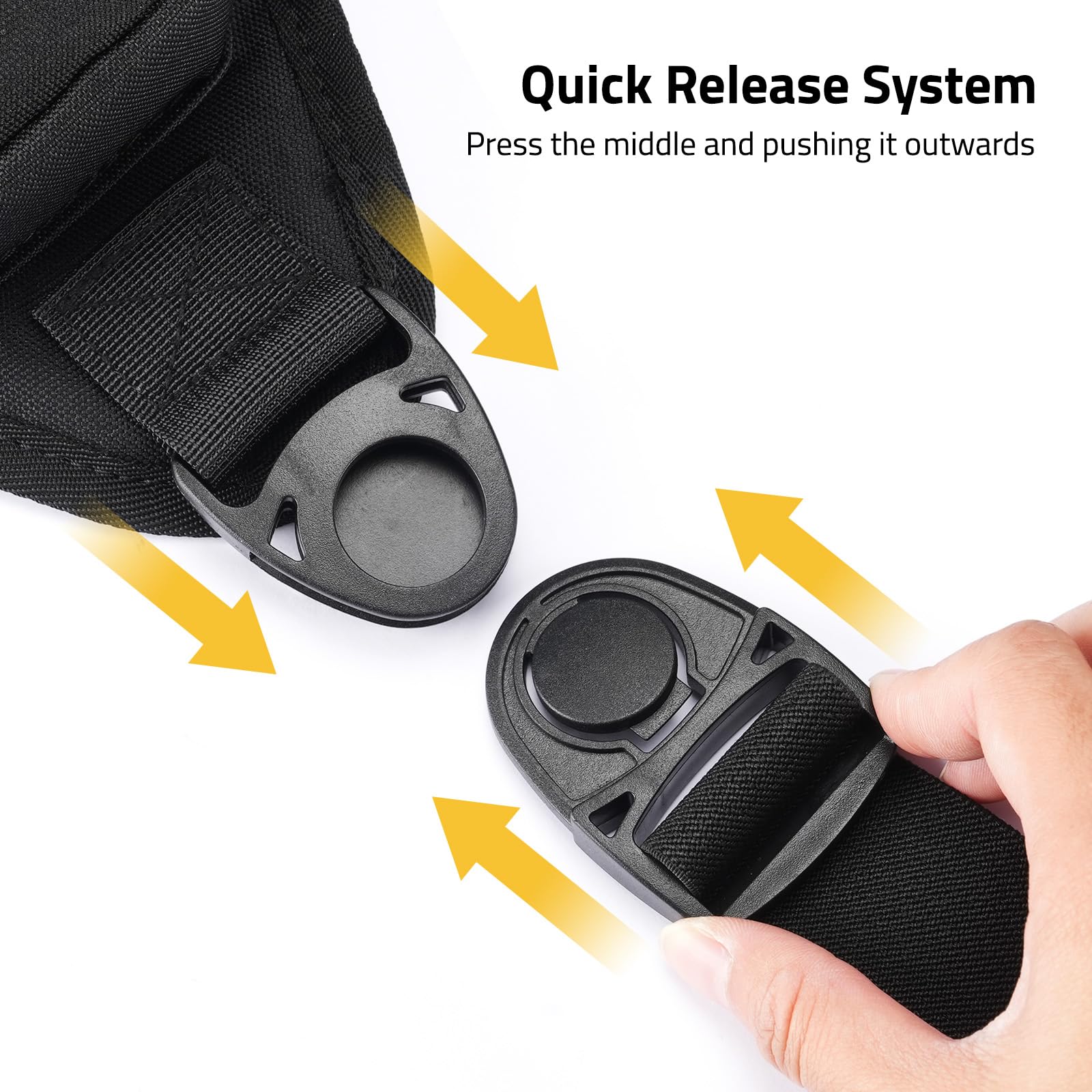 Quick Adjust System:The waist of the chest pack is equipped with quick-adjust buckles, which is convenient to take off by pressing the middle and pushing it outwards