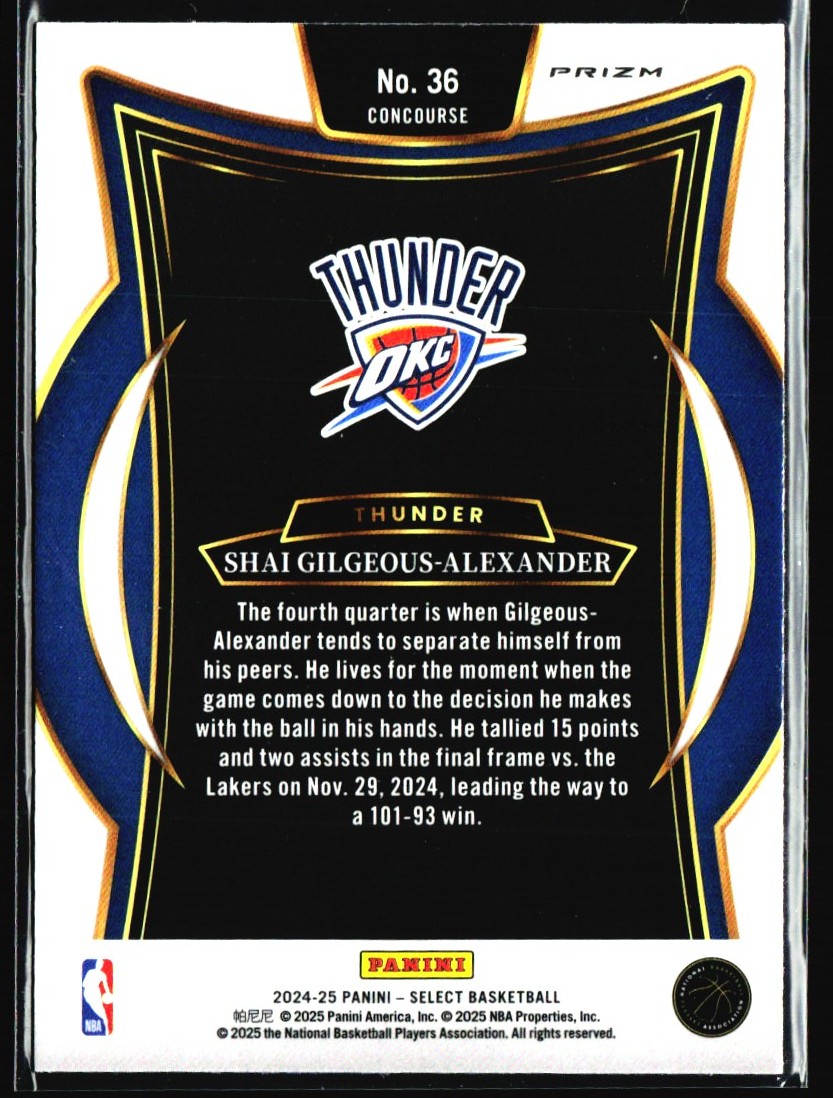 2024-25 Panini Select Shai Gilgeous-Alexander Oklahoma City Thunder #36
