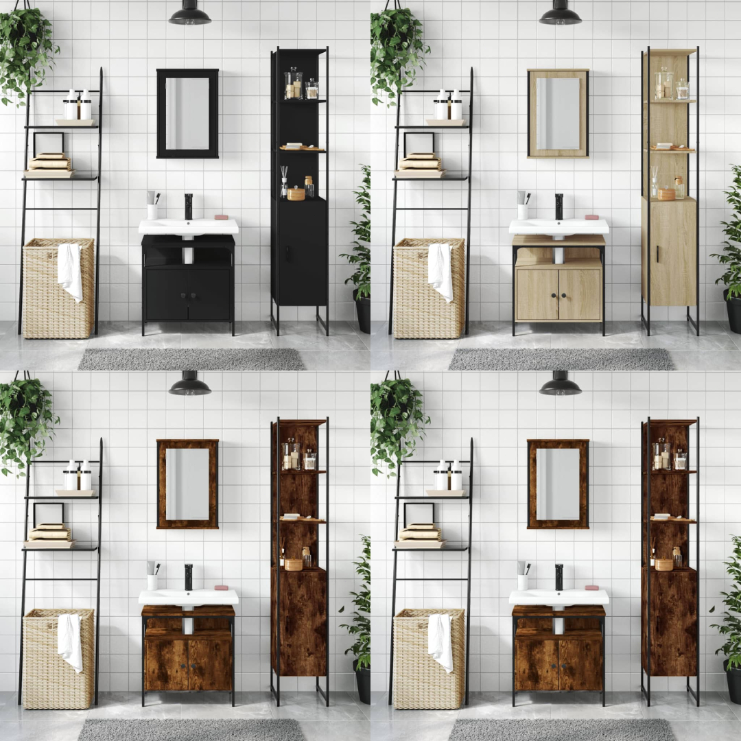 Dieses praktische Badmöbel-Set mit geräumigem Stauraum ist eine hervorragende Ergänzung für dein Badezimmer und verleiht ihm ein aufgeräumtes und eindrucksvolles Aussehen! Langlebiges Material: Der Holzwerkstoff ist von außergewöhnlicher Qualität mit glatter Oberfläche und zeichnet sich außerdem durch Festigkeit, Stabilität und Widerstandsfähigkeit gegen Feuchtigkeit aus. Viel Stauraum: Der Badezimmerschrank bietet verschiedene Aufbewahrungsmöglichkeiten und viel Platz für die Aufbewahrung verschiedener Sachen in deinem Badezimmer. Platzsparendes Design: Der Badezimmer-Spiegelschrank lässt sich an der Wand befestigen, was Bodenfläche spart. Die Badschrank-Oberplatte bietet den idealen Platz für das Waschbecken. Dieser Waschbeckenunterschrank stellt außerdem viel Stauraum zur Verfügung. Klares Spiegelbild: Die Spiegelfläche aus Glas bietet eine feine und unverzerrte Spiegelung, sodass sie sich zum Schminken, Rasieren oder Gesichtspflege eignet. Achtung:Um ein Umkippen zu vermeiden, sollte dieses Produkt mit der mitgelieferten Wandhalterung gesichert werden. Gut zu wissen:Schrauben und Dübel für die Montage an der Wand sind nicht enthalten. Passendes Montagezubehör muss separat gekauft werden. Wenn du dir bezüglich der Montage nicht sicher bist, wende dich bitte an einen Fachmann. Bitte lies und befolge jeden Schritt in der Anleitung.