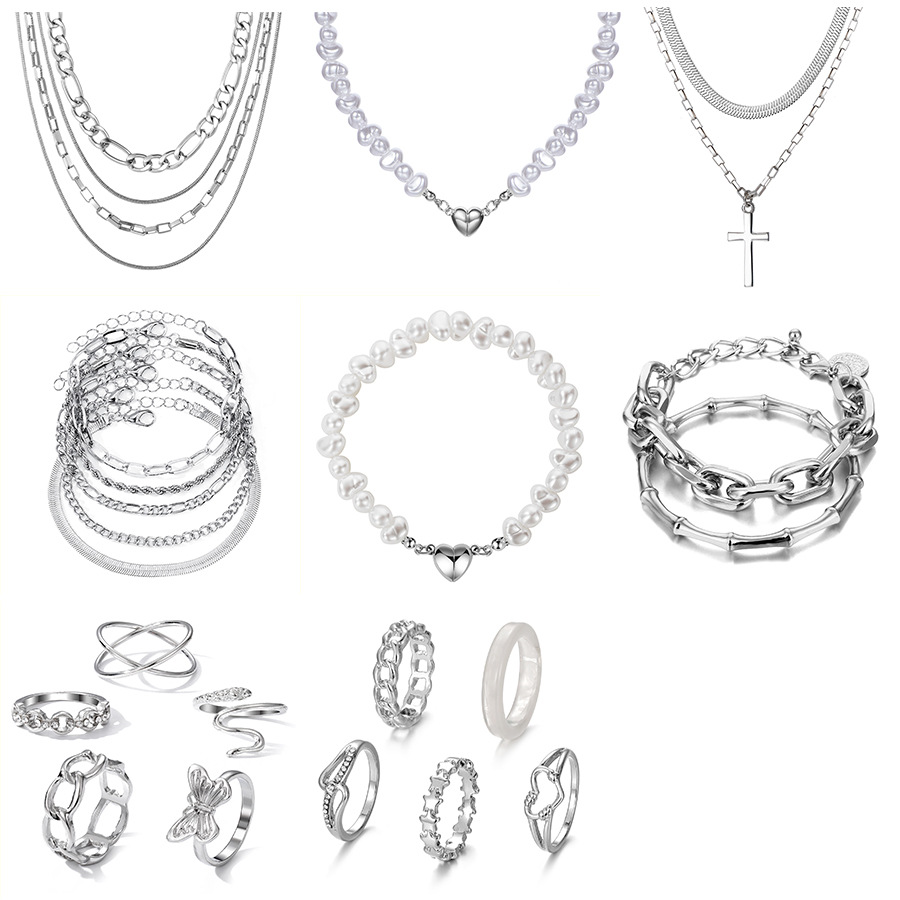 23 Pieces Silver Jewelry Set for Women Fashion Costume Silver Pearl Jewelry