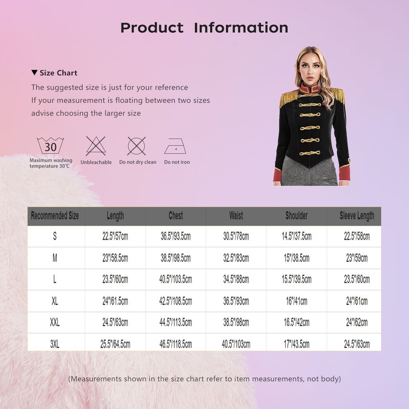 The jacket is decorated with gold braid trim, makes you more eye-catching.