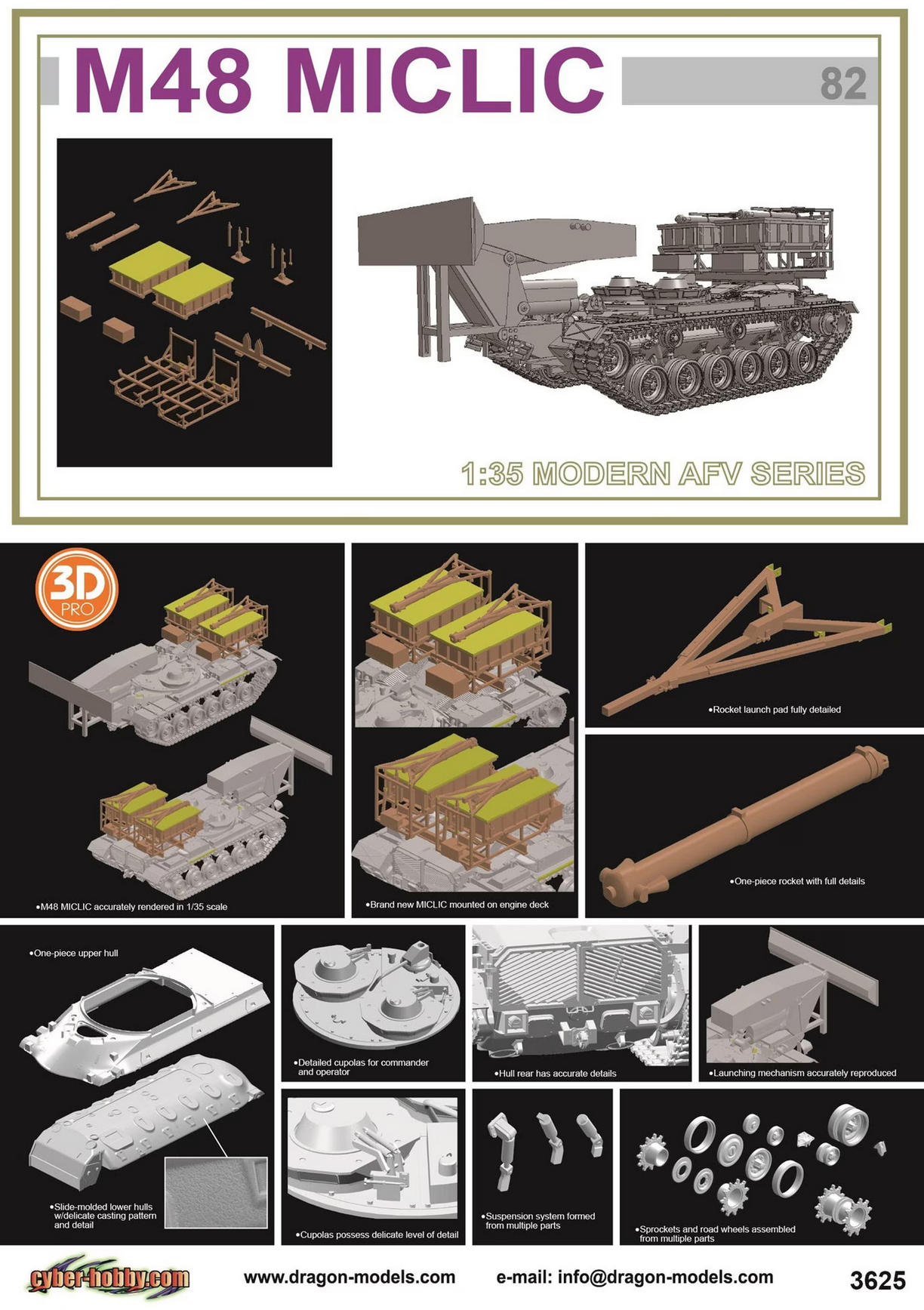 DRAGON 1/35 3625 M48 MICLIC Armored Mine-Clearing Vehicle(Cyber-Hobby White Box)