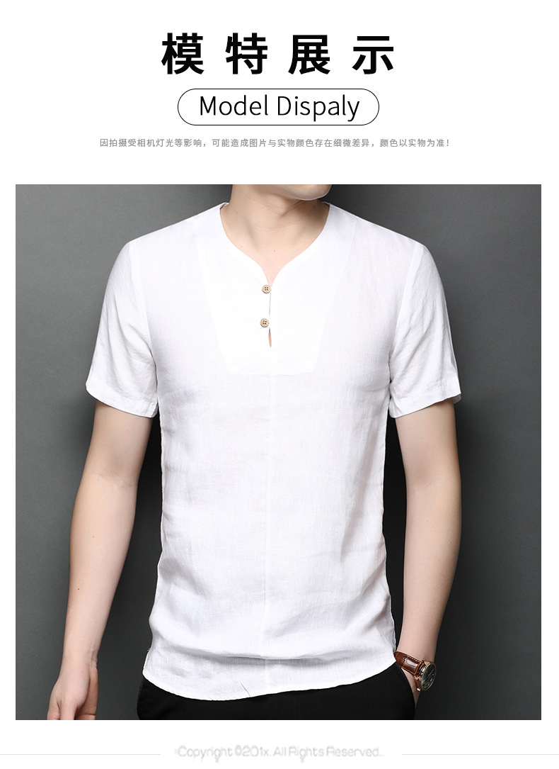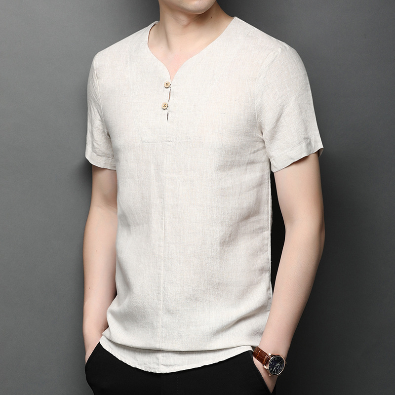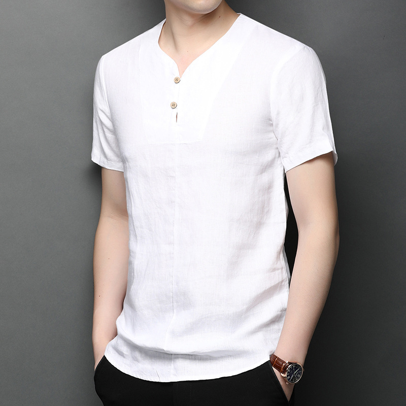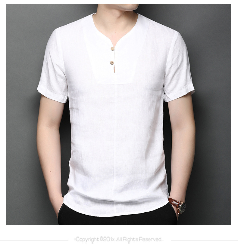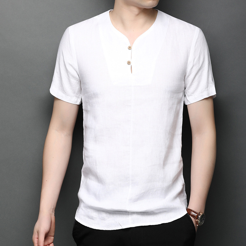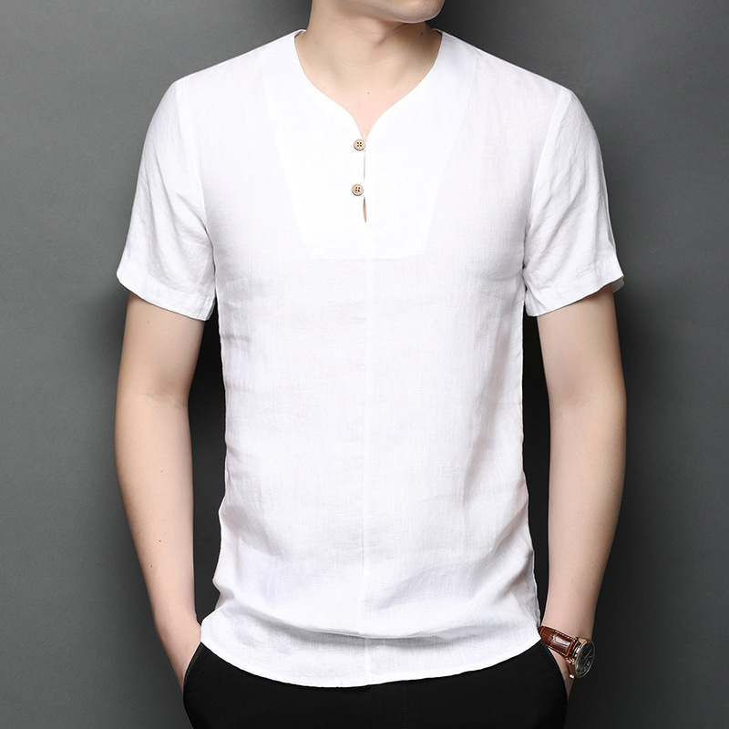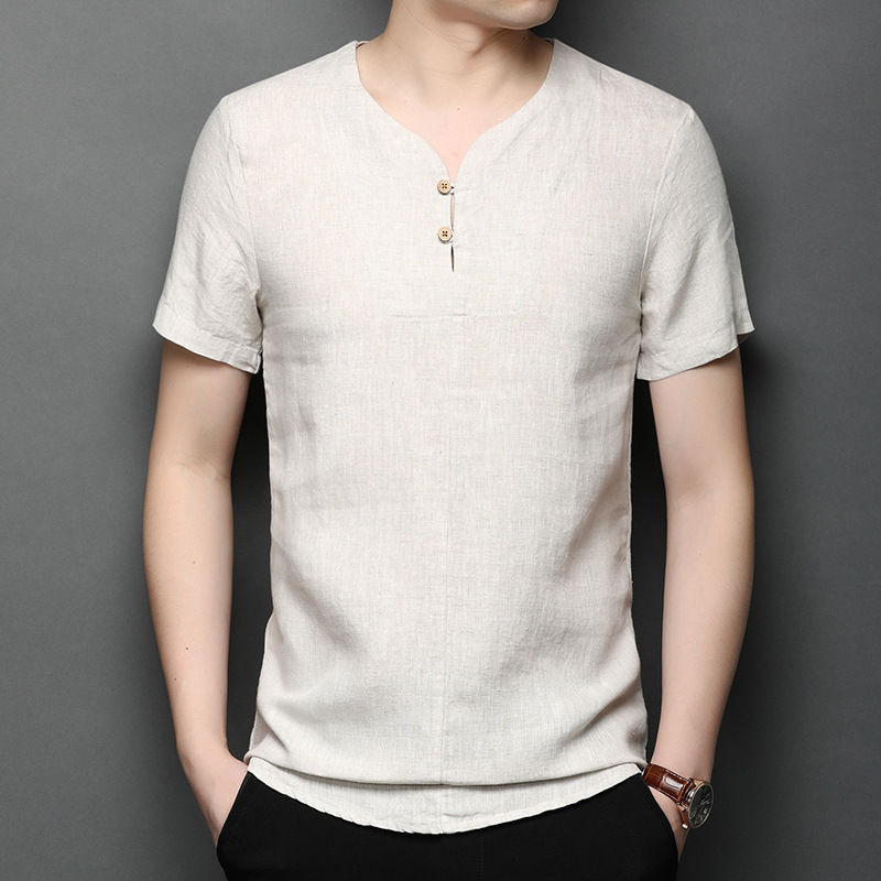 Linen T-shirt Men's Short Sleeves Summer New Chinese-style Retro Stand-up Collar