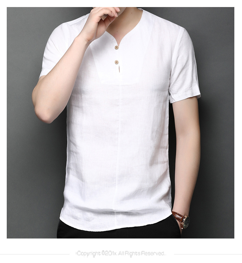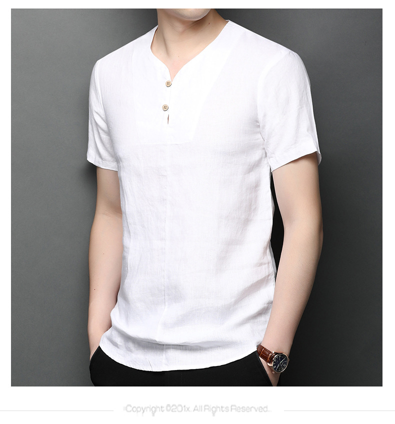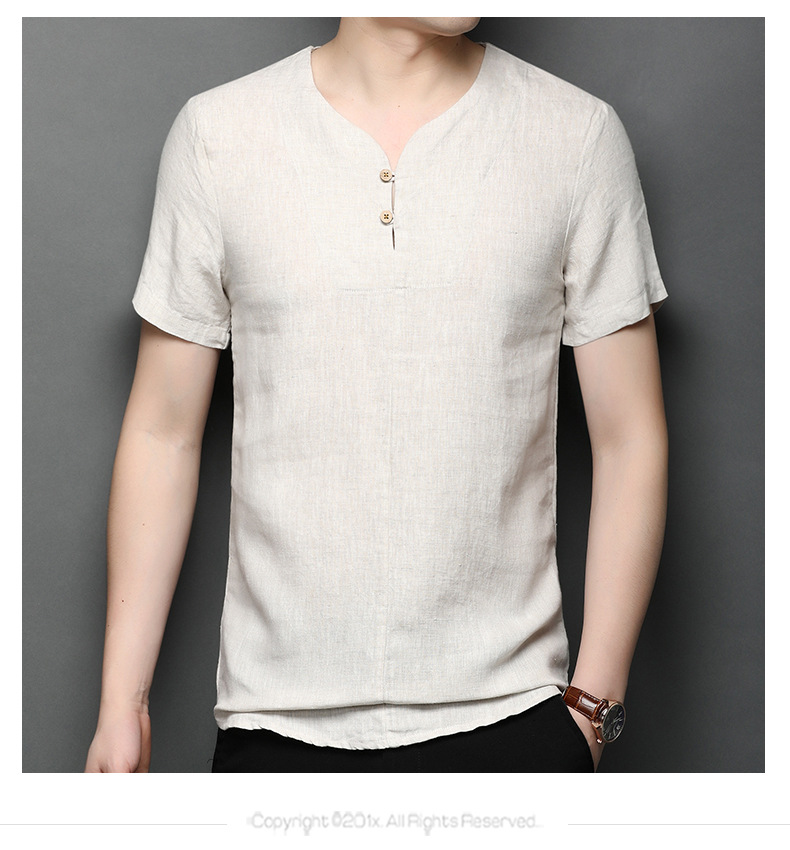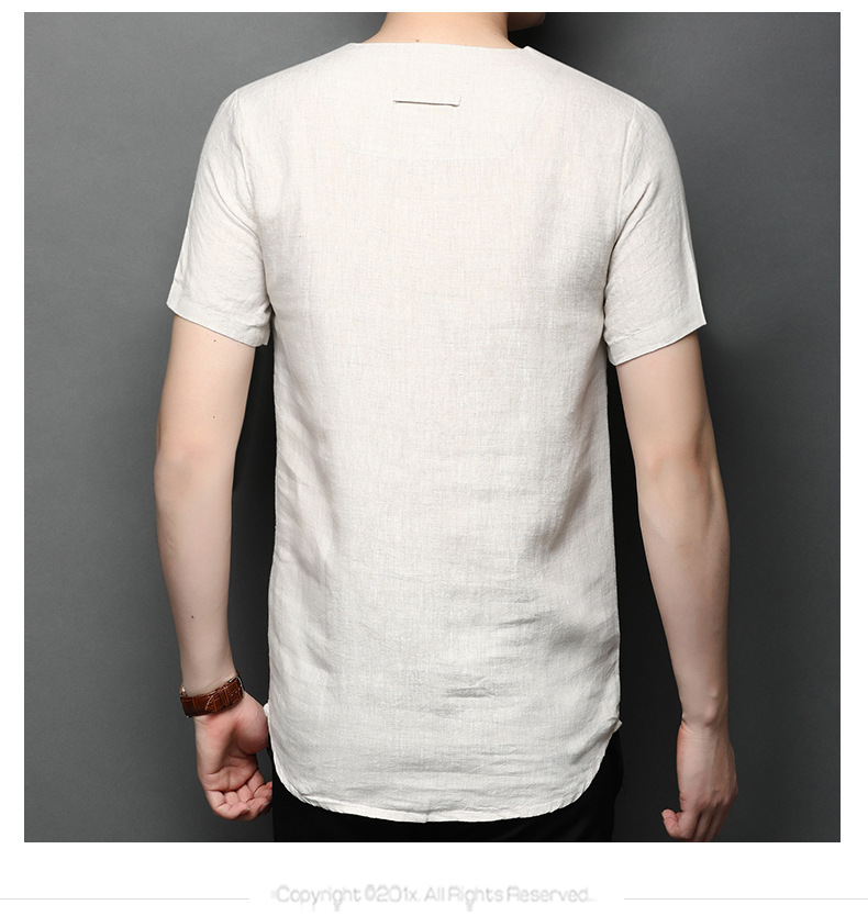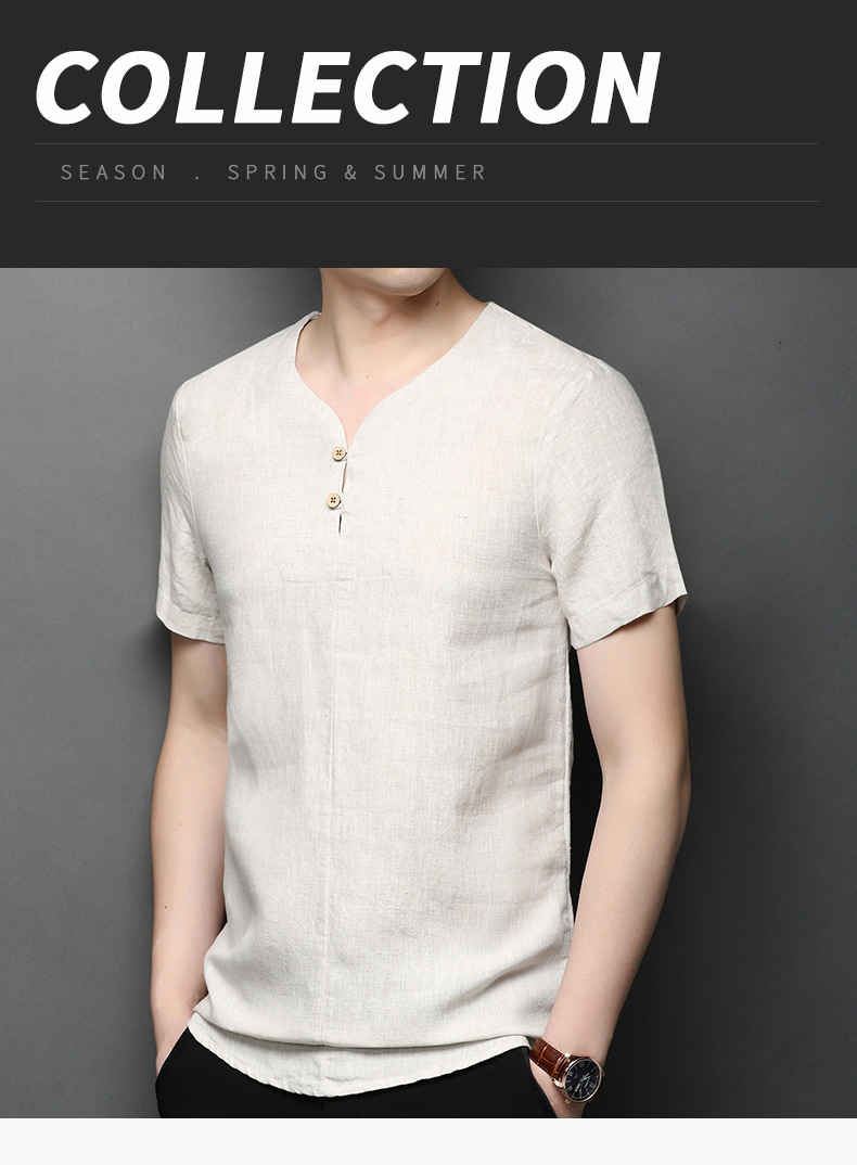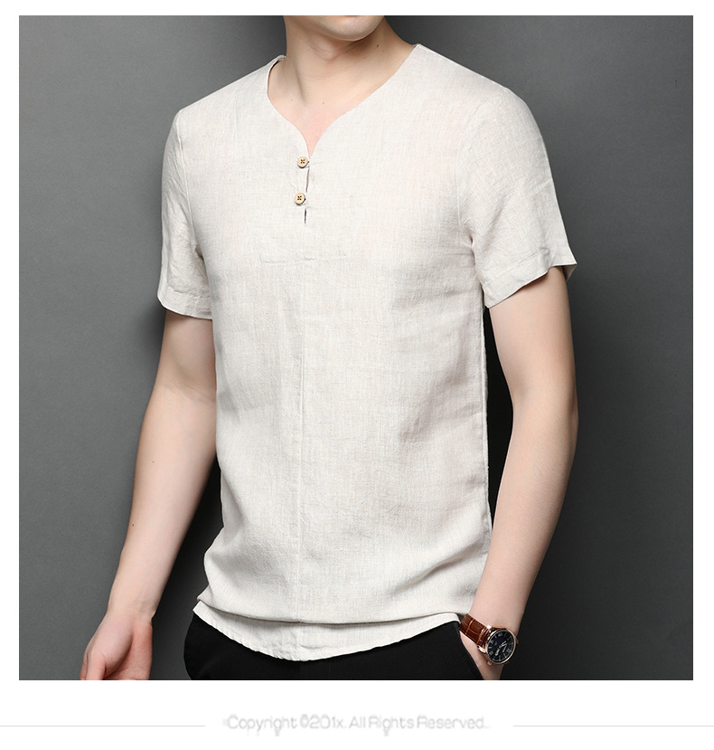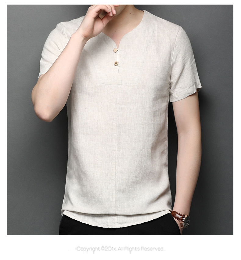 Linen T-shirt Men's Short Sleeves Summer New Chinese-style Retro Stand-up Collar