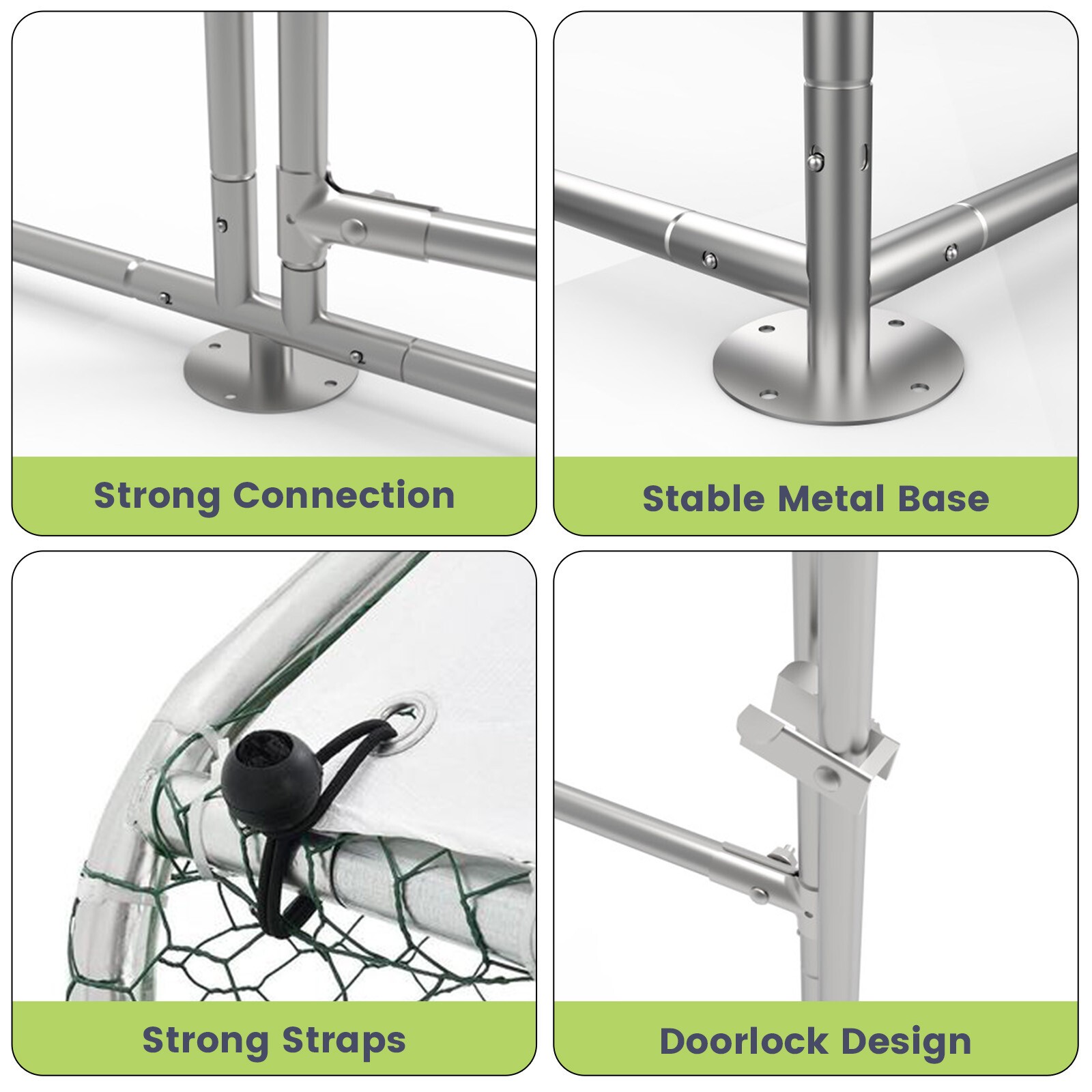 【COATED HEXAGONAL WIRE MESH】 Our large chicken run is crafted from the steel wire mesh prevents animals from escaping while maintaining optimal ventilation. The small gaps between meshes enhance safety for your animals, protecting them from potential predators.