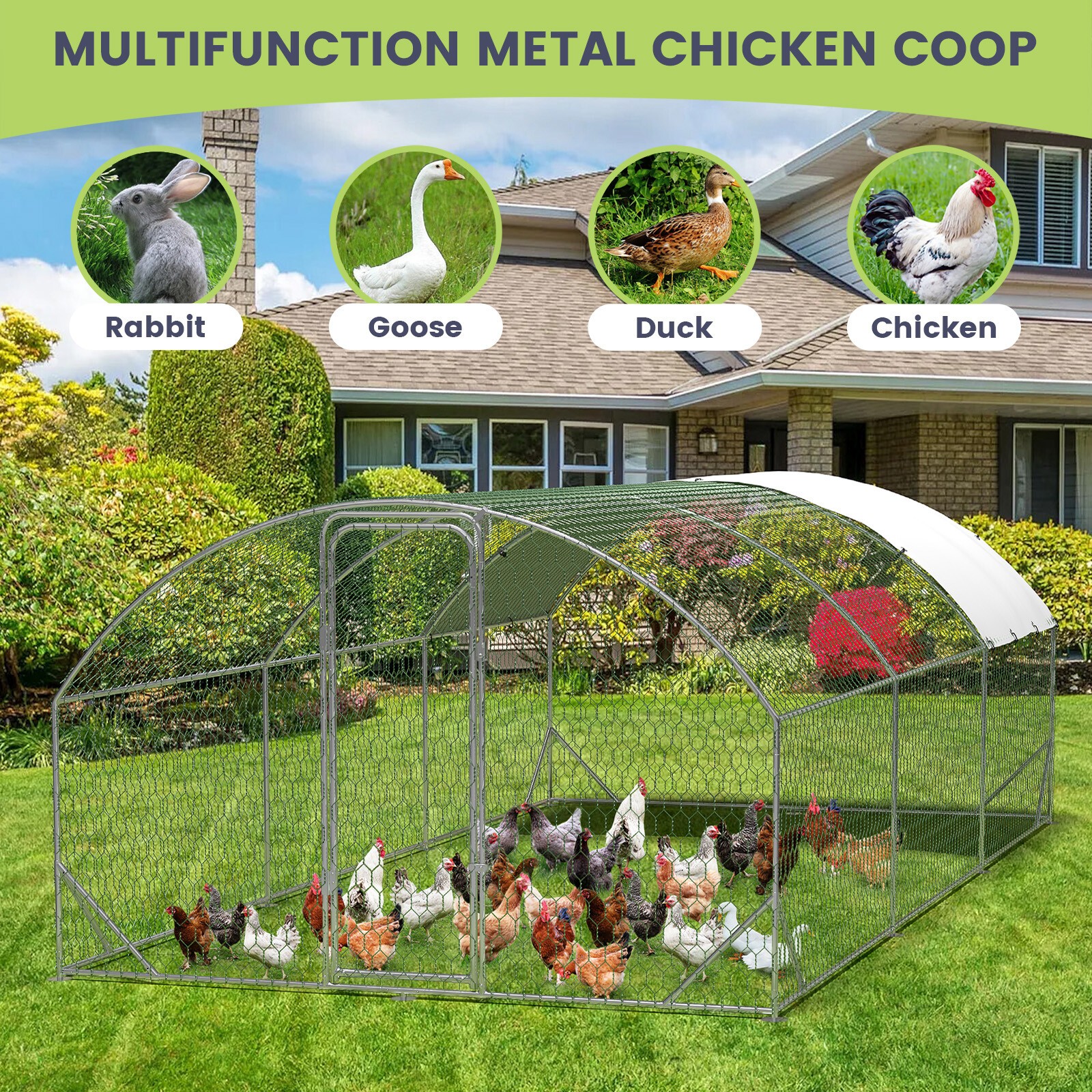 【VERSATILE ANIMAL ENCLOSURE】 Our large metal chicken coop offers a spacious area for small to medium-sized animals, providing ample room for play and rest. Suitable for various animals including rabbits, ducks, cats, dogs, sheep, birds, and land turtles, this versatile enclosure is ideal for a range of pet needs.