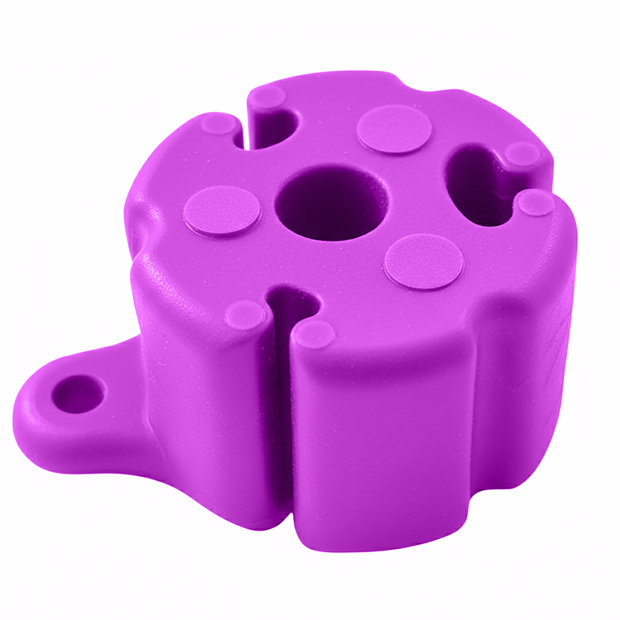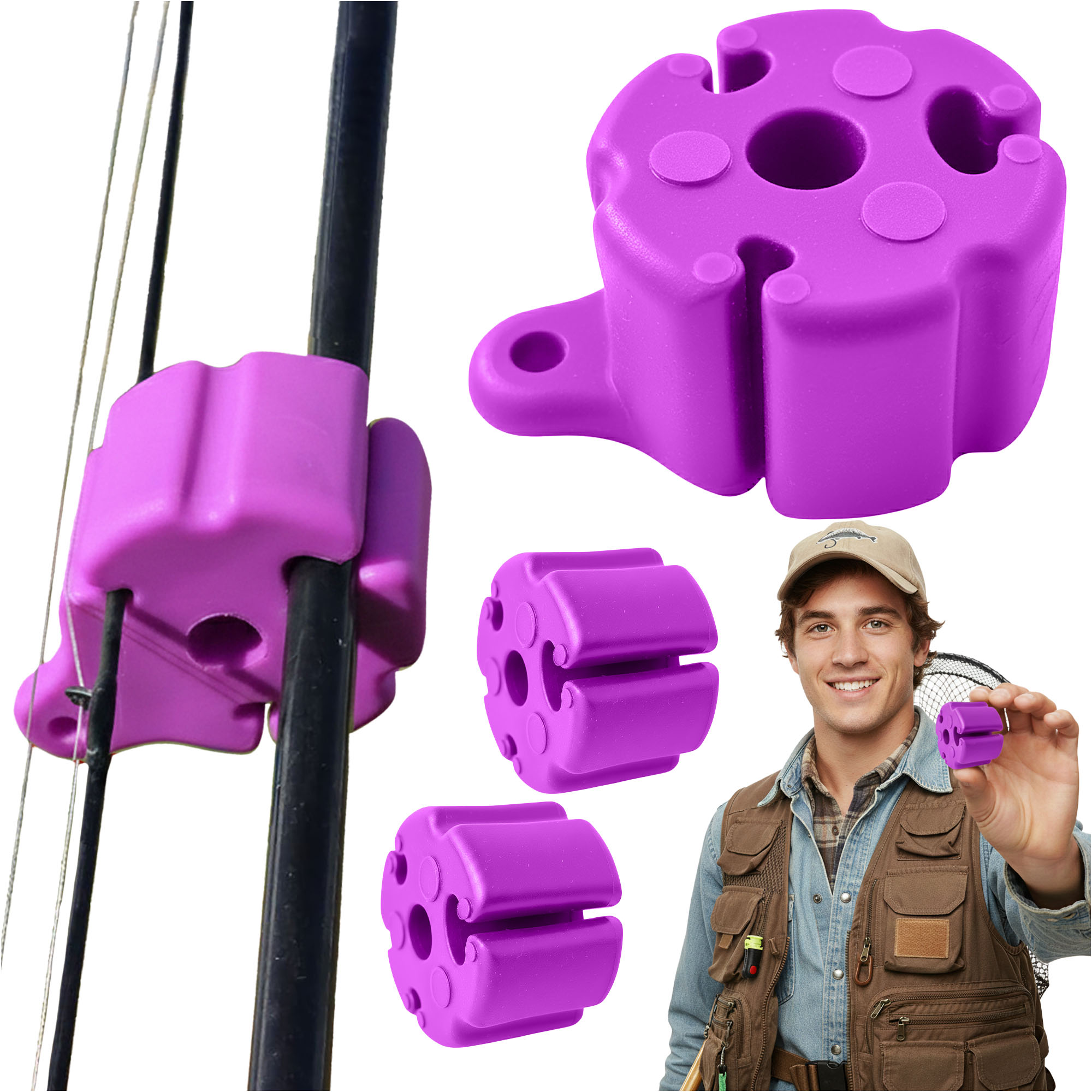 Les cinq trous vous permettent de choisir le positionnement de votre plate-forme en fonction du diamètre et des besoins. Les trous sont de 4 mm, 4 mm, 5 mm, 6 mm, 8 mm et 10 mm - le silicone est flexible, de sorte que les trous peuvent facilement s'étirer dans la pratique. Cela facilite l'adaptation du support à votre canne et à votre appareil de pêche sans avoir à vous soucier de manquer un millimètre".