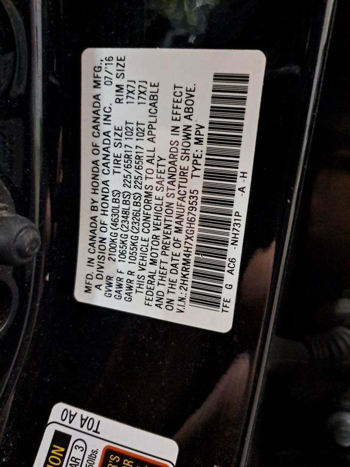 CR-V 16 (US market), assembly, w/fog lamps, (without rain sensing)