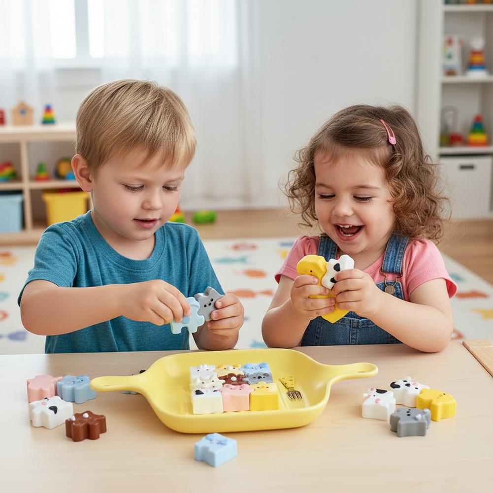 3. Premium Material & Compact Size: Each engaging piece is crafted from high-quality TPR material, ensuring a pleasant touch. The complete set, when compactly arranged, measures approximately 9cm x 9cm x 2cm (3.54" x 3.54" x 0.79"), making it an ideal size for small hands and easy storage.