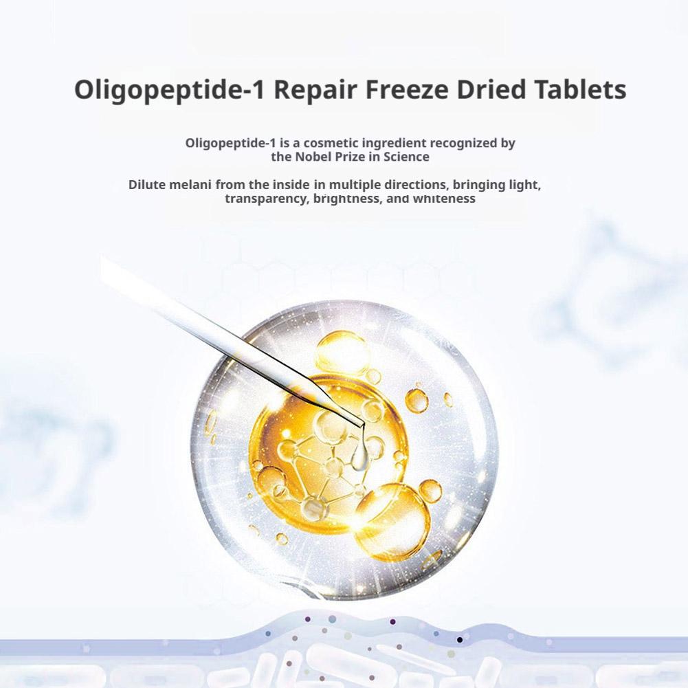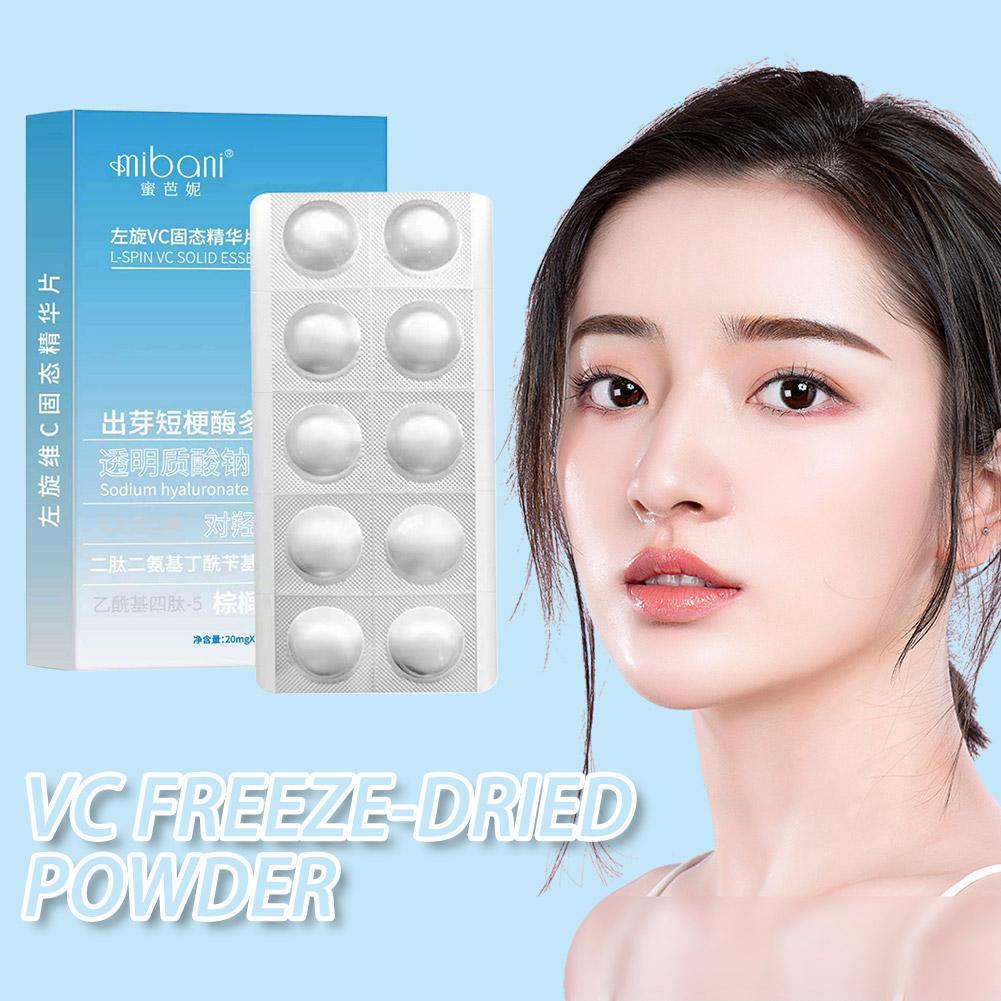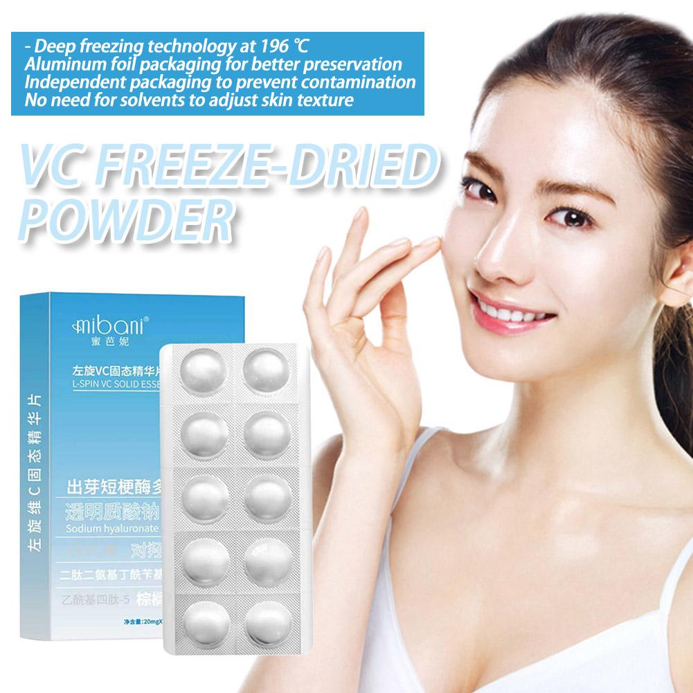 1. **Potent and Efficient Formula:** Unlock the power of advanced L-Spin VC utilizing -196°C deep-freeze technology, ensuring exceptional potency. Each compact tablet dissolves instantly in just 1 second, delivering a concentrated blend of L-Spin VC and Oligopeptide-1 for superior skin rejuvenation. This innovative solid-state essence offers 3-4 times higher absorption compared to traditional freeze-dried powders, with the activity of one tablet equivalent to three bottles of conventional alternatives.