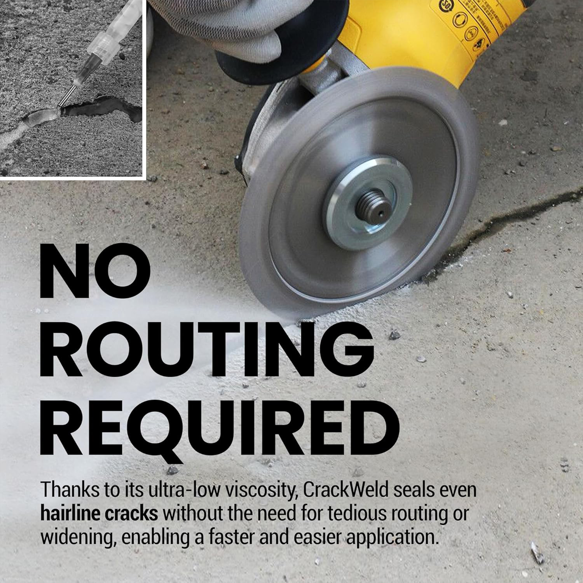 Unlike traditional repair methods, this system requires no routing or grinding prior to application. Simply clean the crack and apply the compound directly, saving time, effort, and mess while still achieving strong, effective results. The advanced formula penetrates deep into the crack, filling it through its entire depth rather than just sealing the surface. Once cured, it hardens into a rigid compound that bonds tightly and becomes stronger than the surrounding concrete, restoring structural integrity and helping prevent cracks from reappearing.