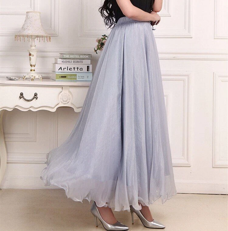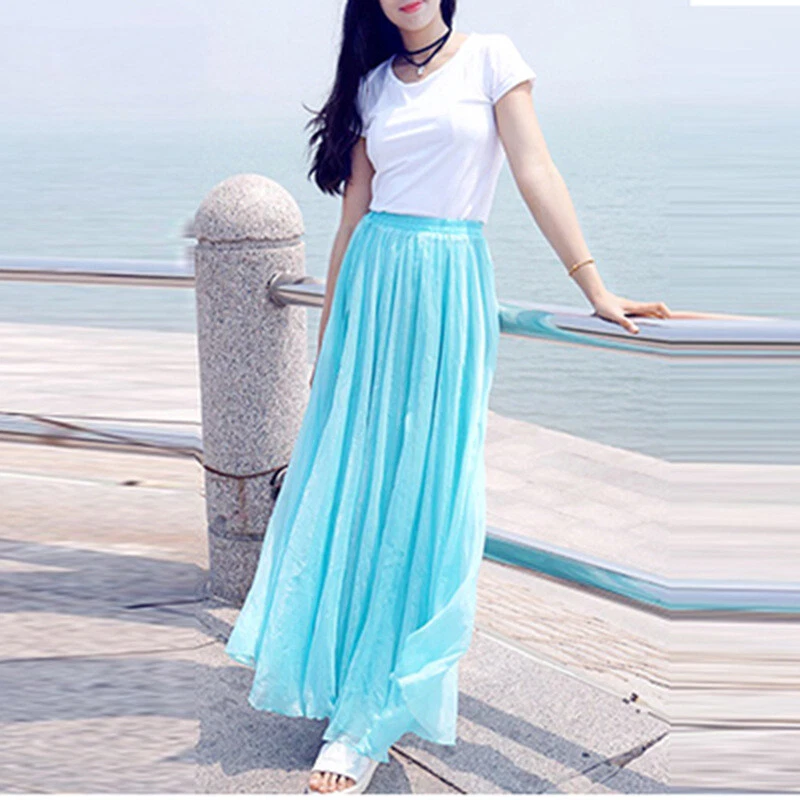 Women Long Skirts High Waist White Chiffon Summer Boho Maxi Skirt Beach Flounce