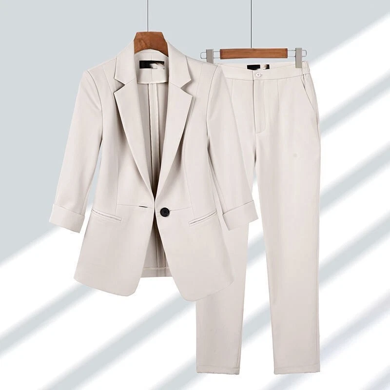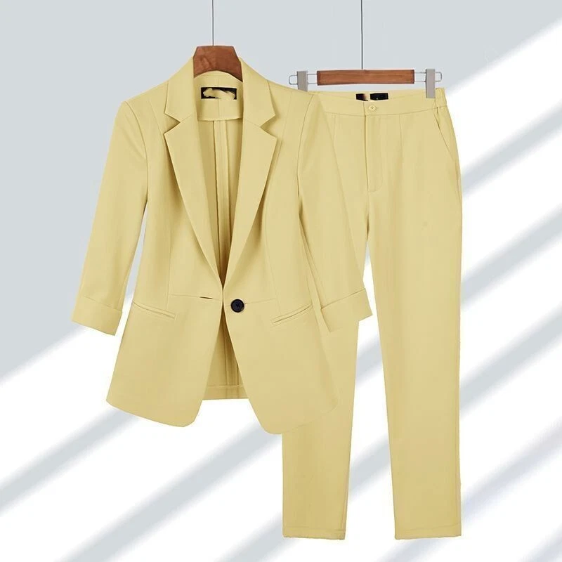 Women Pants 2 Piece Set Spring Office Lady Suit Blazer Coat Trousers Outfits