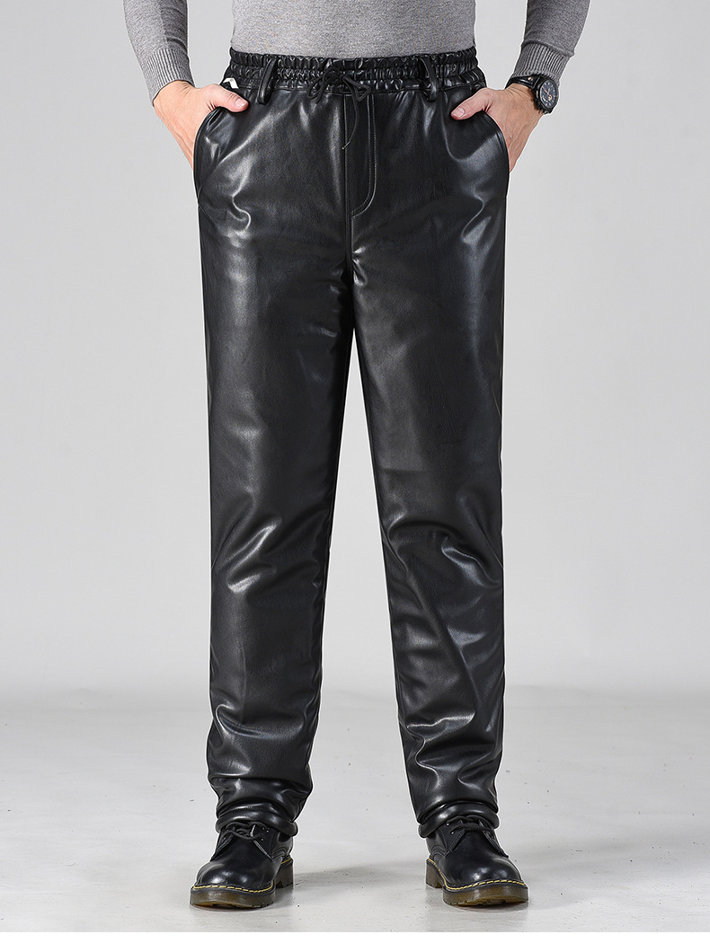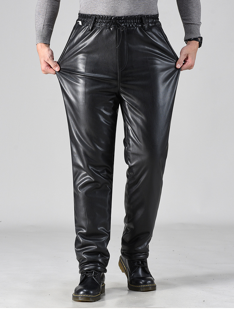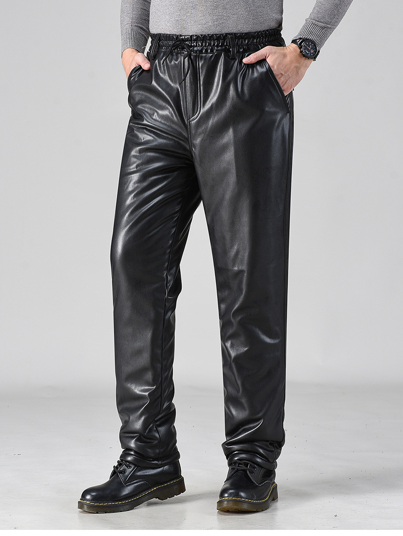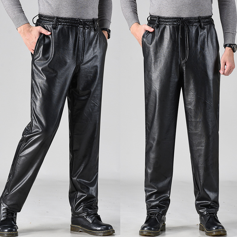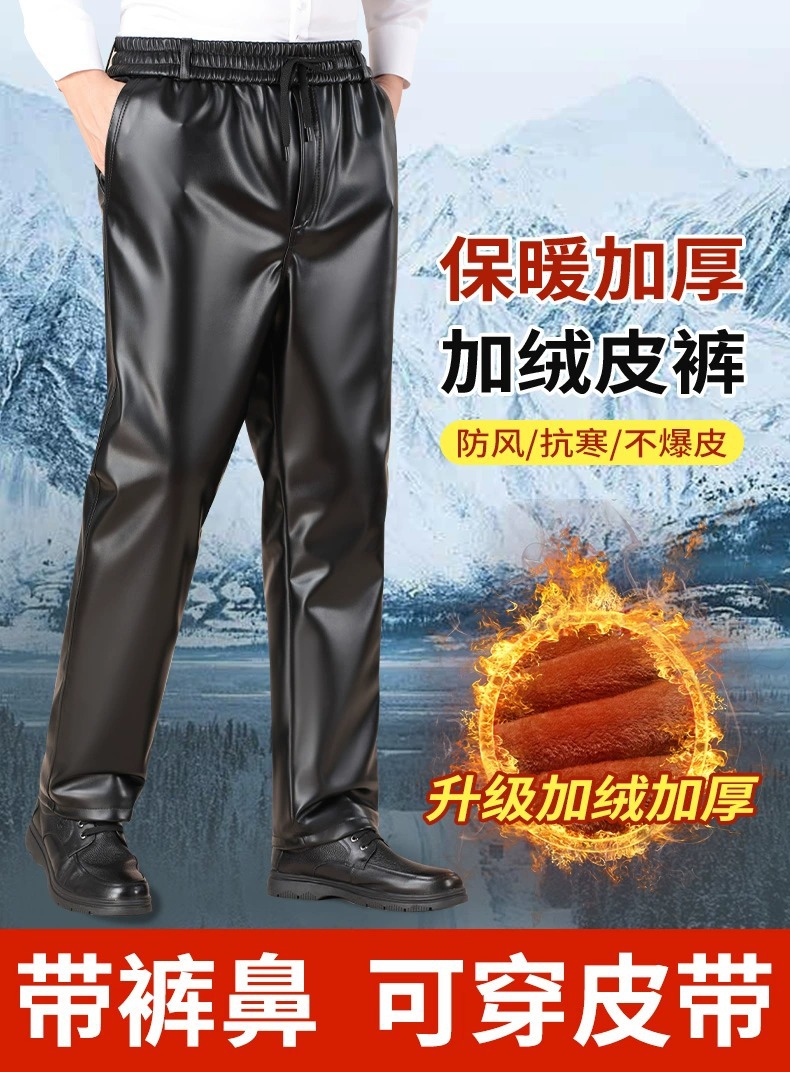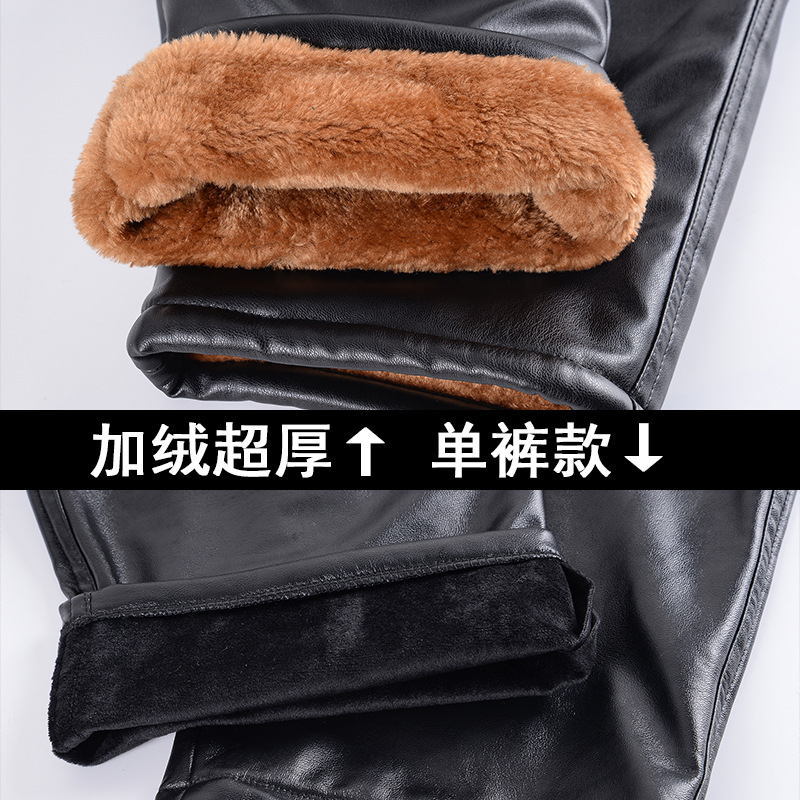 Men Leather Trousers Velvet Thickening Riding Motorcycle Windproof Warm Trousers