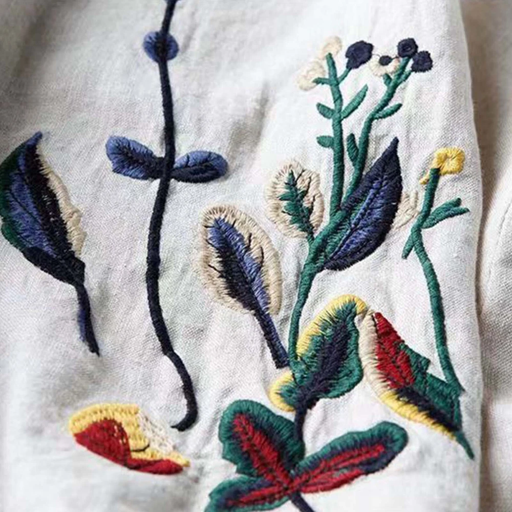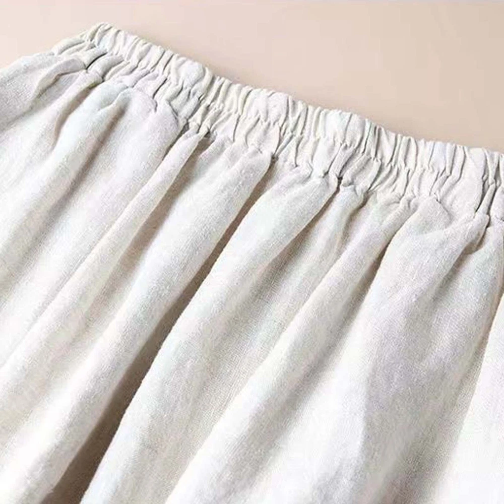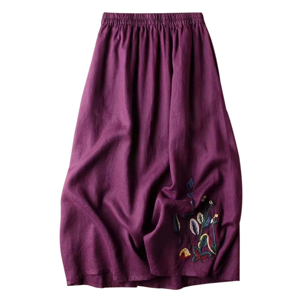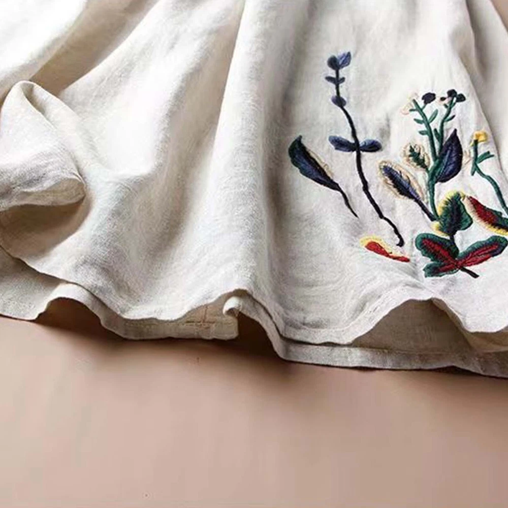 Women Floral Cotton Linen Skirt for Embroidered Summer A Line Midi Dress