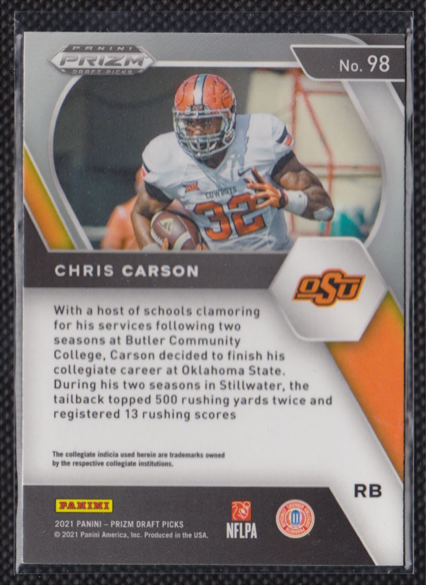 | 2021 Panini Prizm Draft Picks Chris Carson Oklahoma State Cowboys #98 |