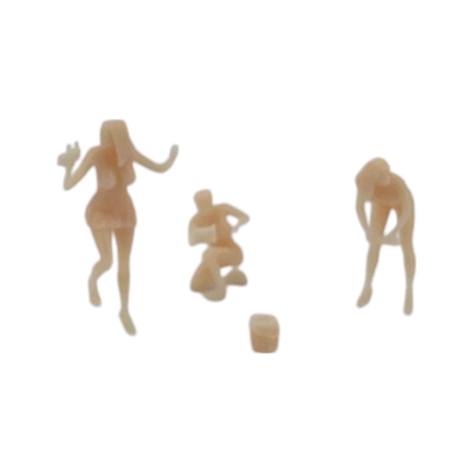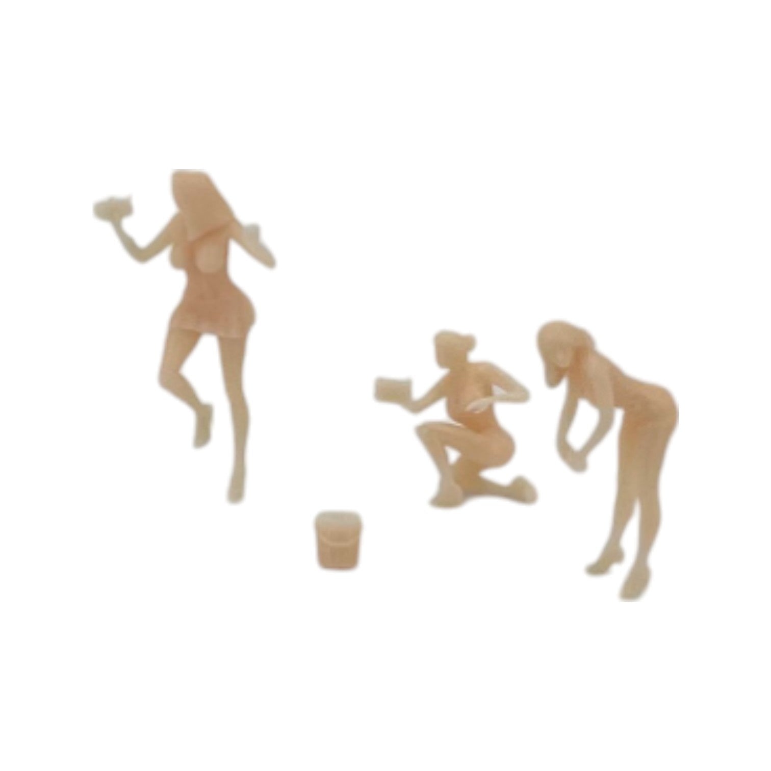Add a splash of fun to your layout with this set of Bikini Carwash Girls, modeled in scale and ready to paint. Perfect for creating a lively scene outside a gas station, car wash, or summer festival display.