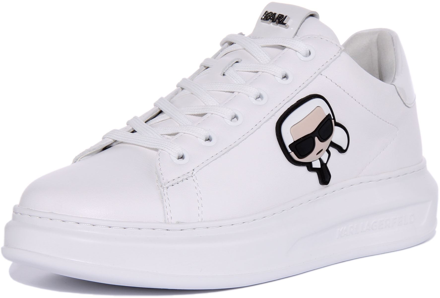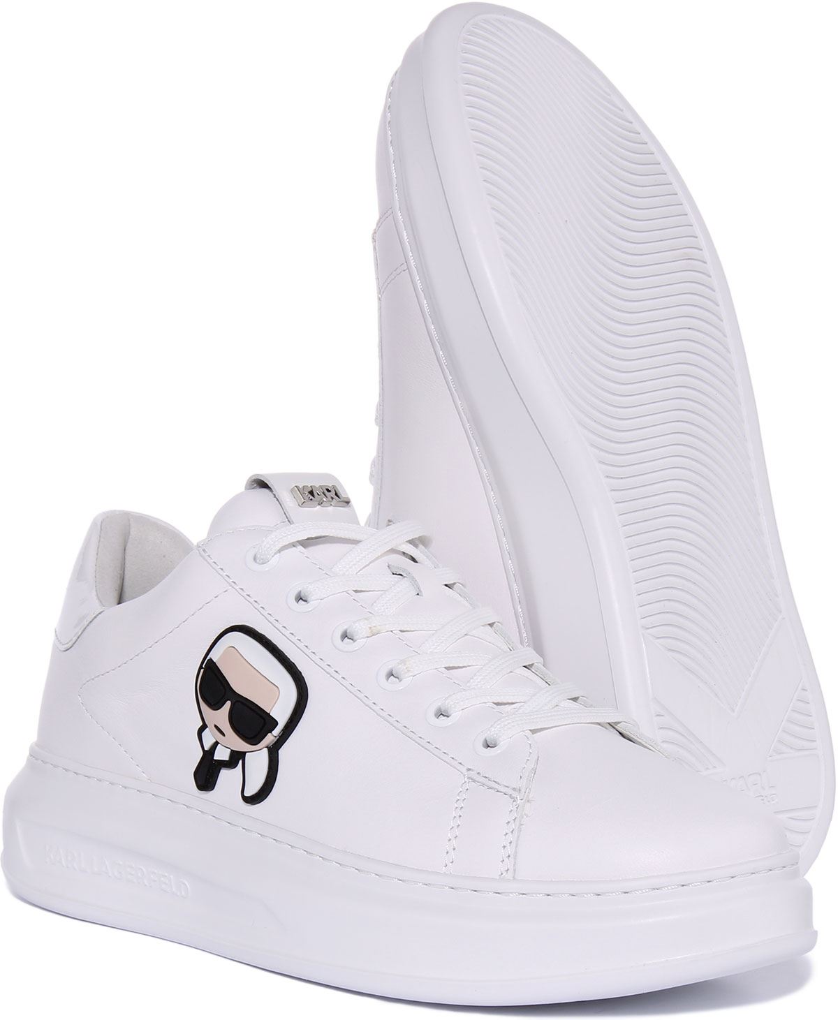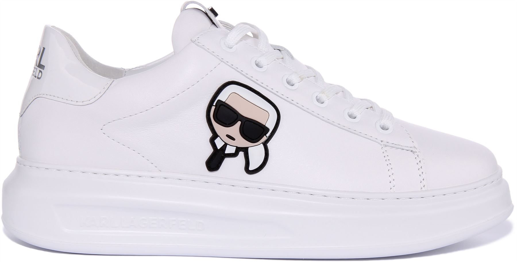 Karl Lagerfeld Kapri Scarpe da ginnastica da uomo in pelle Ikonic con lacci in mono bianco