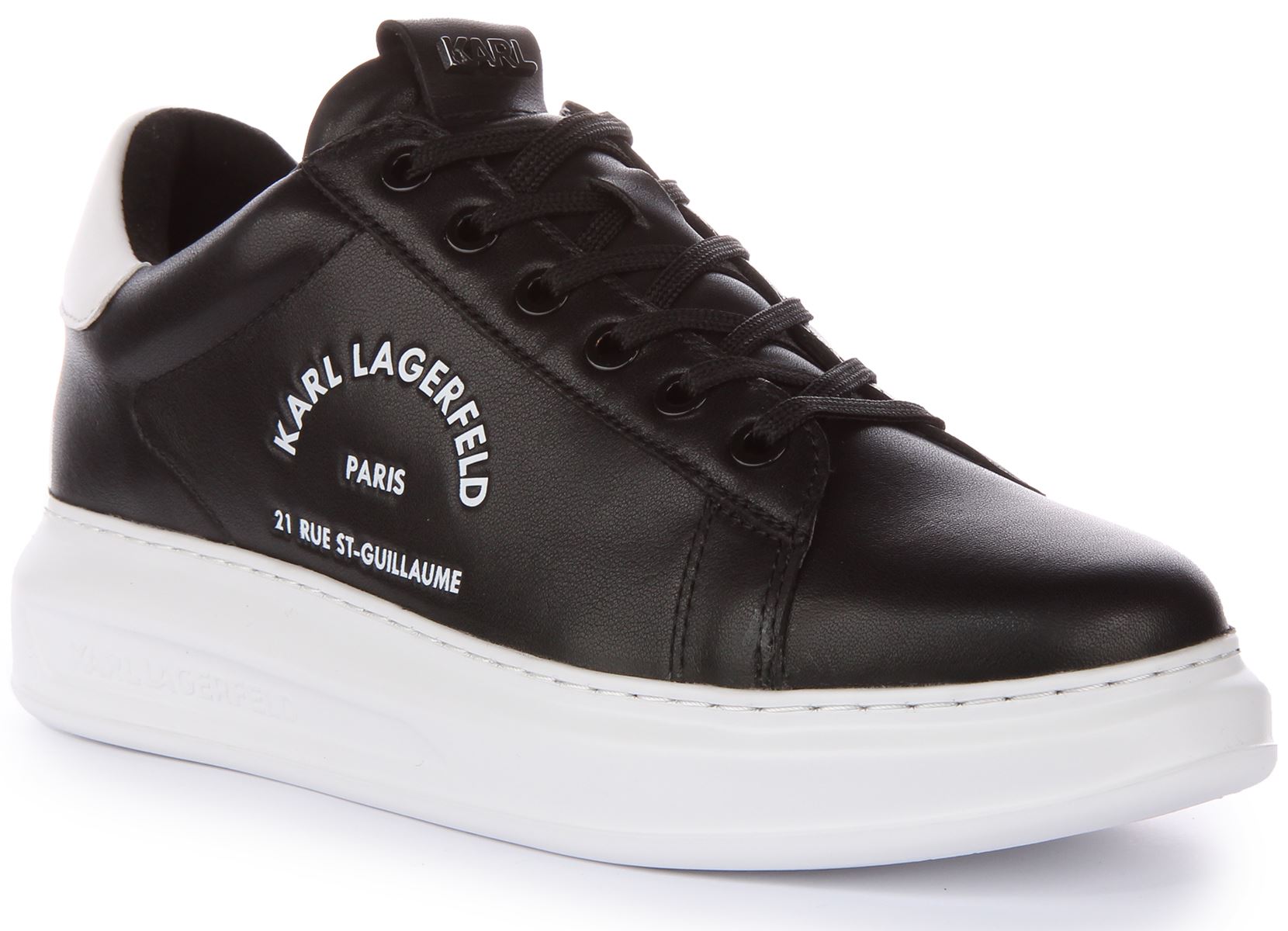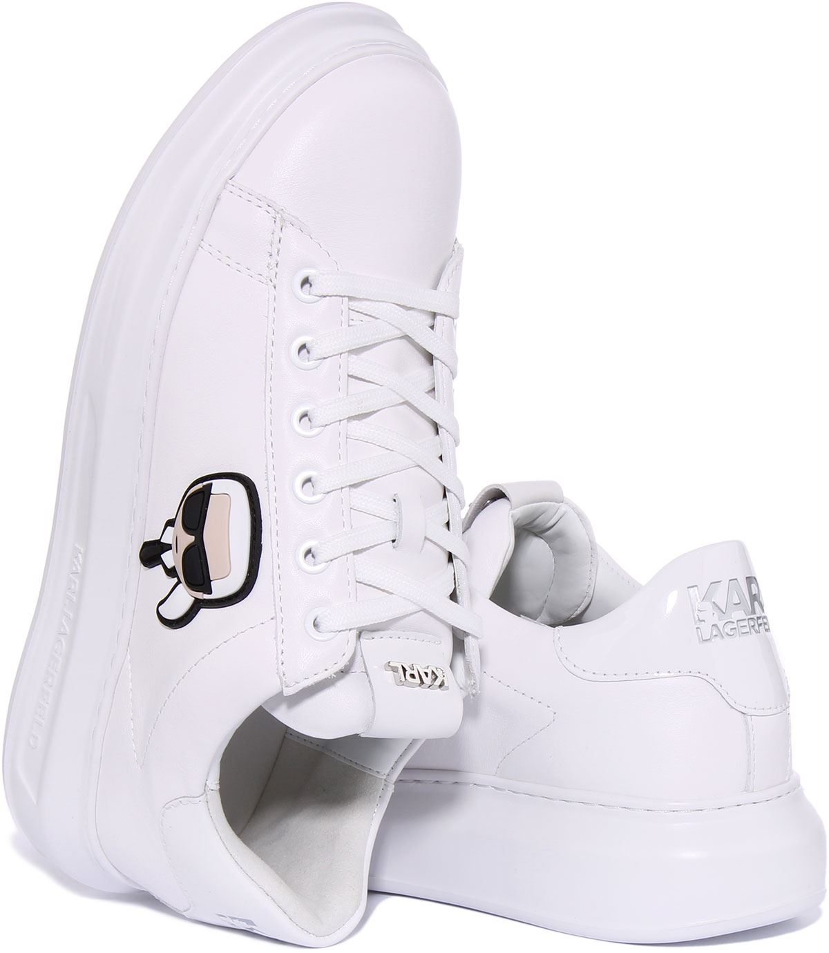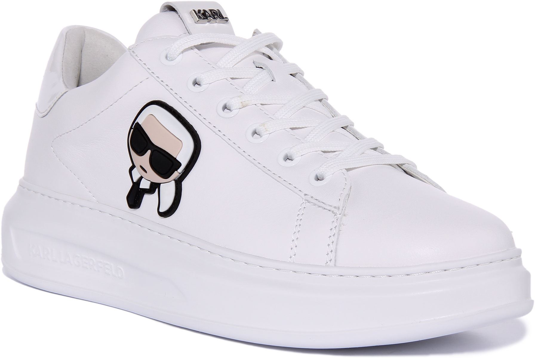 Karl Lagerfeld Kapri Scarpe da ginnastica da uomo in pelle Ikonic con lacci in mono bianco