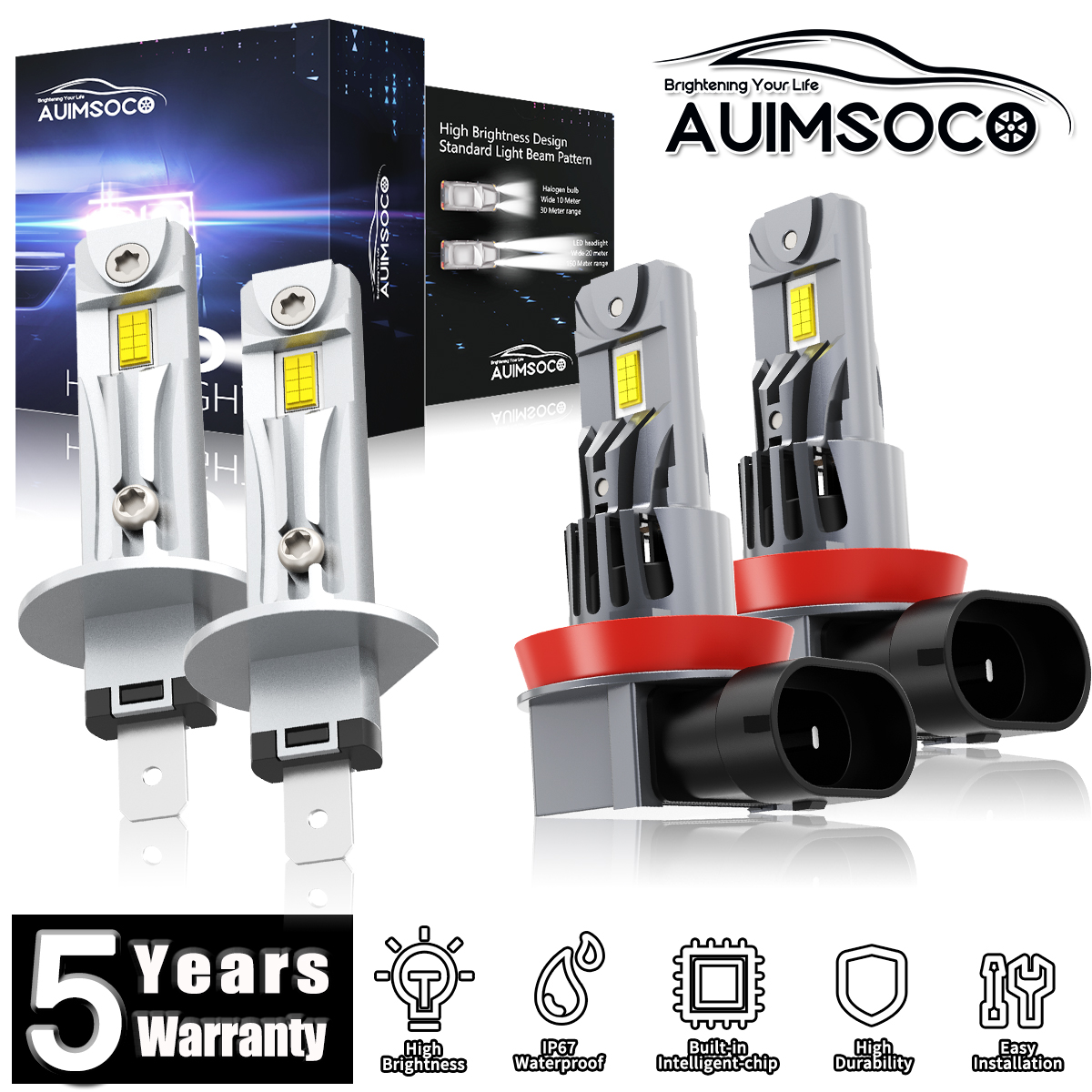 Super Bright: 100W, 72000LM, 6500K, Customized LED chips, 500% brighter as original halogen bulbs.Don't be fooled by high lumen ratings.