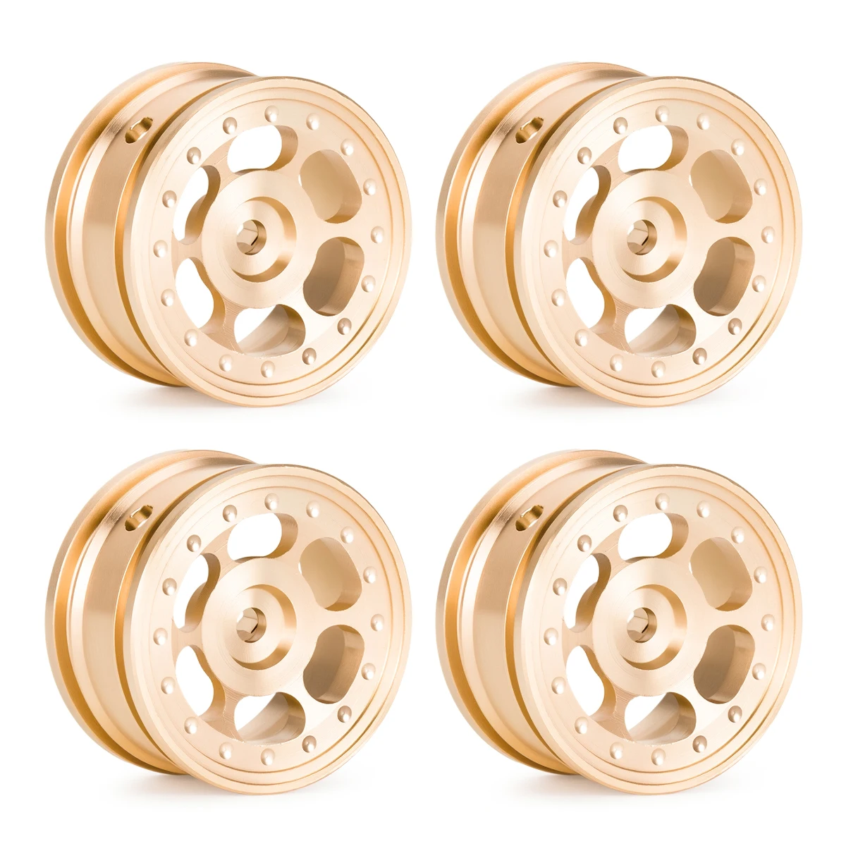 4Pcs 0.7'' Brass Front Rear Wheel Rims for AXIAL SCX30 Jeep Wrangler JLU Ford Bronco 1/30 RC Crawler Car Upgrade Part