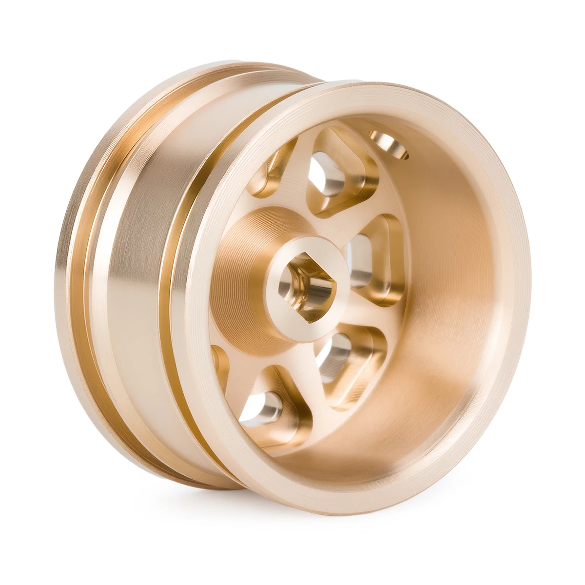 Features: Made from premium brass material, ensuring exceptional durability and a prolonged service life Increase the weight of the wheels Improve anti-rollover stability and climbing capability Easy to install; perfectly replaces original plastic hubs without modifications.