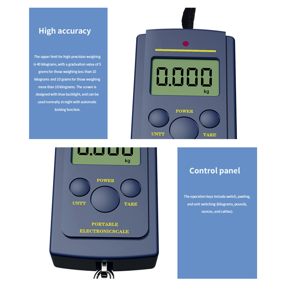 5.10kg 10g above 10kg with tare weighing function, support multiple international unit conversion, temperature display function, and automatic l lock function.