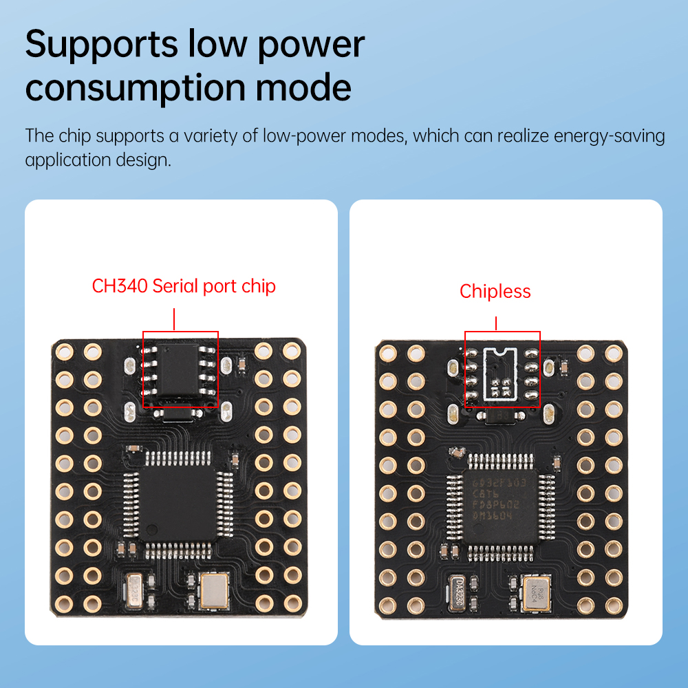 5. Support for low-power modes, the chip supports a variety of low-power modes, which can realize energy-saving application design.