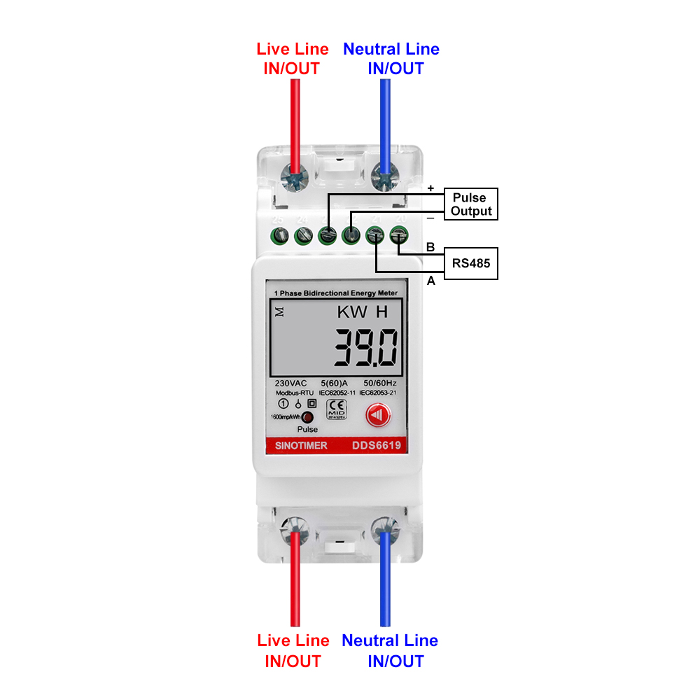 1. Multi-function display with RS485 Modbus communication, LED indication pulse output.