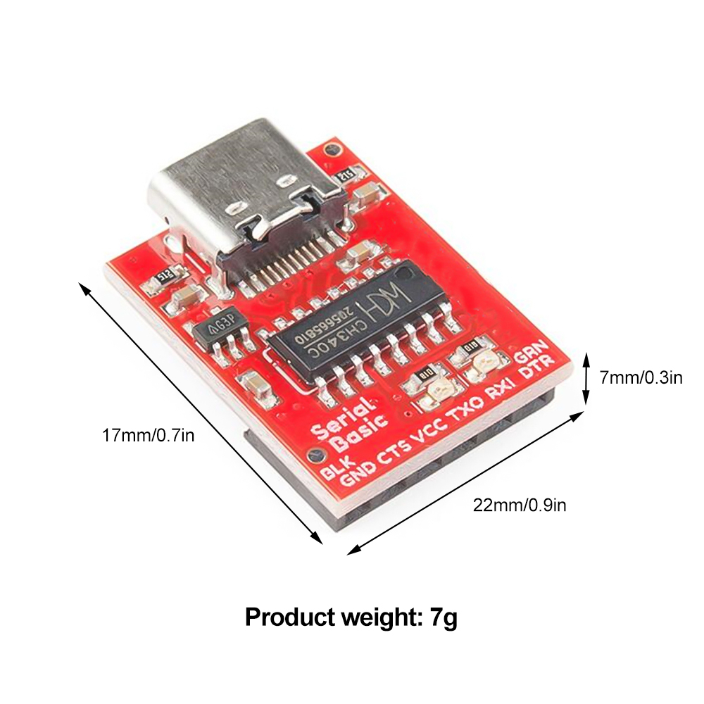 This product is a Type-C to TTL serial port module, using CH340 USB bus conversion chip, with 2 indicator lights on the board, which are communication indicators. Because there is no serial port on our current computer, we generally use a USB to serial port module, with only one purpose, to map the computer's USB port to a serial port.