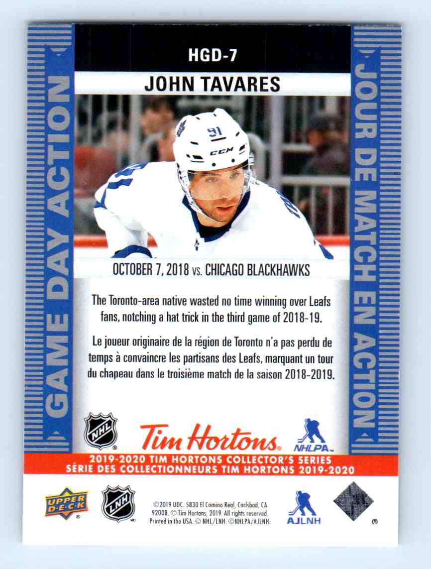 | 2019-20 Upper Deck Tim Hortons Game Day Action John Tavares Toronto Maple Leafs |