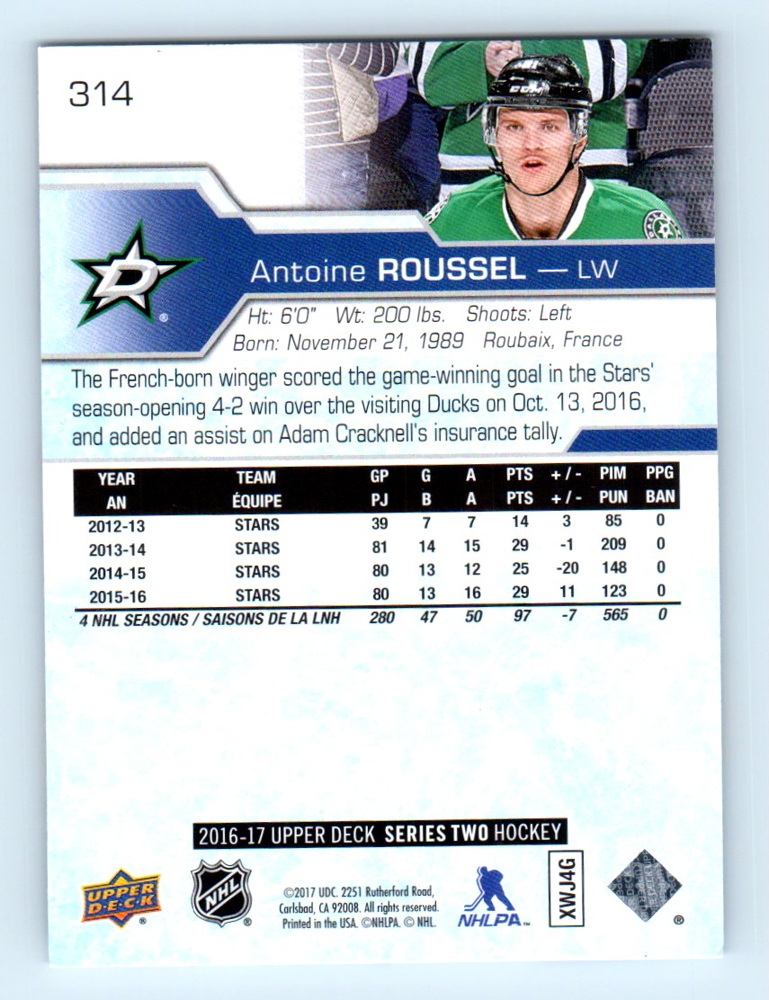 | 2017-18 Upper Deck Toronto Spring Expo Antoine Roussel Dallas Stars #314 |