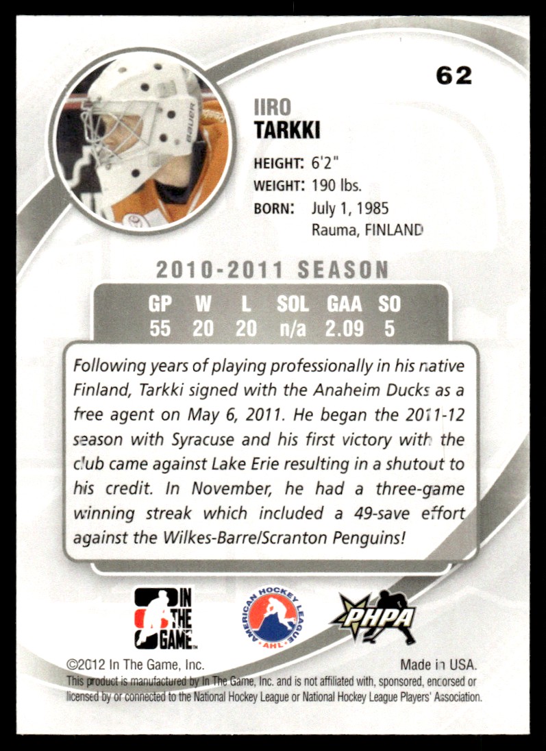 | 2011-12 In The Game Between the Pipes Iiro Tarkki Syracuse Crunch #62 |