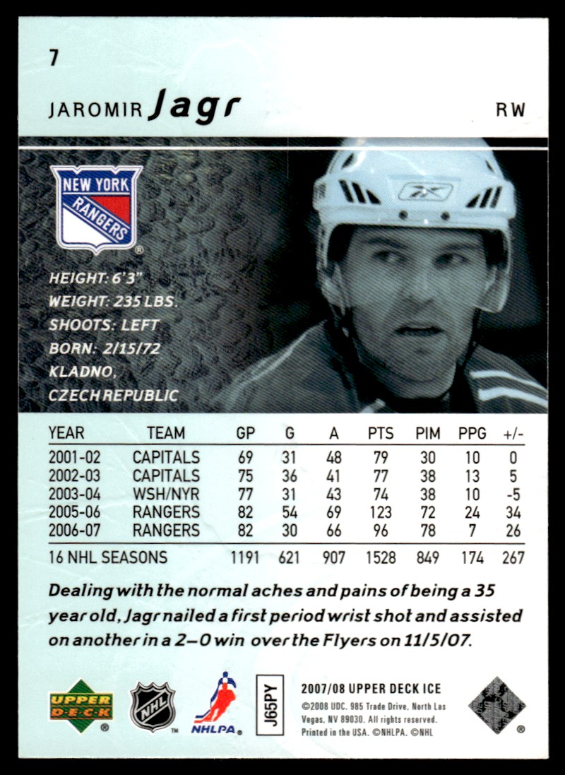 | 2007-08 Upper Deck Ice Jaromir Jagr New York Rangers #7 |