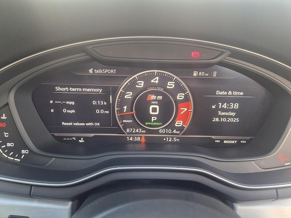 19in Alloy Wheels - 5-Arm Turbine Design - Magnesium Look - Gloss Turned Finish,Privacy Glass,Audi Virtual Cockpit,Fine Nappa Leather - S Super Sport Seats - S Embossed - Black,Flat-Bottomed 3-Spoke Leather Trimmed High Multi-function Steering Wheel,Electrically Adjustable Front Seats with Memory Function for Drivers Side,Brake Calipers - Red,Extended LED Interior Lighting Package - Multi-Coloured,Hill Hold Assist,Heated Front and Outer Rear Seats, 2 x USB Charging Ports and 1 x AUX-IN, Audi Connect Infotainment Services - 3 Month Trial, Audi Connect Safety and Service, Audi Smartphone Interface, Audi Sound System, Bluetooth Interface, DAB Digital Radio Reception, MMI Navigation Plus, Tow Bar Preparation, Audi Drive Select, Cruise Control with Speed Limiter, Tyre Pressure Warning Light, 19in Alloy Wheels - 5-Spoke Cavo Design - Contrasting Grey - Partly Polished, Aluminium-Effect Door Mirror Housings, Anti Theft Locking Wheel Bolts, Brake Calipers Painted in Black with S5 Logo at the Front, Door Mirrors - Electrically Adjustable and Heated with Built-in LED Indicators, Electric Windows - Front, High Gloss Package, Rear Grille - Black Grained, Rear Spoiler, S Radiator Grille in Twilight Grey - Matt with Twin Inlays in Matt Aluminium, S Rear Diffuser in Twilight Grey - Matt with Diffuser Trim in Matt Aluminium and Honeycomb Grill in Black, S Specific Air Inlet Horizontal Inlay in Matt Aluminium, S Specific Air Inlets in Titan Black - Matt, S Specific Dual-Branch Chrome Tailpipes with Twin Oval Pipes Each on Left and Right, S Specific Front and Rear Bumpers, S5 Badges on Grille - Front Wing Panels and Rear, Space Saver Spare Wheel, Windscreen with Acoustic Glazing, Audi Beam, High-Beam Assist, LED Headlights with LED Rear Lights and Dynamic Rear Indicators, Light and Rain Sensor, 4-Way Electric Lumbar Support, Auto-Dimming Rear-View Mirror, Cloth Headlining in Black, Contrast Stitching on Seats - Steering Wheel and Gear Lever Gaiter, Deluxe 3-Zone Electronic Climate Control, Electric Boot Lid Release, Electrically Adjustable Front Seats, Email - Calendar and Text Messages can be Displayed on your Vehicles MMI, Fixed Rear Seat Bench with Storage Tray in Seat, Front and Rear Floor Mats, Front Centre Armrest, Gear-lever Knob in Black Leather, Gear-lever with Diamond S Badge, Heated Front Seats, High Multi-function 3-Spoke Leather Steering Wheel with S Badging and Gear-Shift Paddles, Illuminated Door Sill Trims with S Logo, Inlays - Matt Brushed Aluminium, Keyless Go, Leather Door Armrests and Knee Pad, LED Interior Light Package, Lumbar Support - Pneumatically Adjustable with Massage Function, Non-Smoking Package, Pedals and Footrest - Stainless Steel, S Instrument Dials, Split-Folding 2-Seater Rear Seat Bench in 3 Parts - 40-20-40 with Rear Centre Armrest, Tool Kit and Car Jack, Electromechanical Power Steering, S Model Enhanced Braking System, S Sport Suspension, 6-Airbag System, ABS - Anti-Lock Braking System, Anti-Theft Alarm, Electromechanical Parking Brake, ESC - Electronic Stabilisation Control inc ABS - ASR and EDL, First Aid Kit and Warning Triangle, ISOFIX Child Seat Mounting and Top Tether, Key with S5 Logo, Multi Collision Brake Assist, Parking System Plus, Pop-Up Bonnet for Pedestrian Protection, Pre-Sense City, Seat Belt Monitoring, Variable Restraint System.With a full service history and the last service completed in October 2025 at 87,230 miles, this 2017 Audi S5 TFSI V6 presents a well maintained example. This four wheel drive model is powered by a 3.0 litre petrol engine and meets Euro 6 emissions standards. It comes with a 6 month warranty and its MOT is valid until November 2026. Inside, you will find electrically adjustable front seats with a memory function for the driver, along with heated front and outer rear seats for added comfort. The flat-bottomed, leather trimmed steering wheel adds a sporty feel, complemented by an extended LED interior lighting package offering multi coloured options. For convenience, Hill Hold Assist is also included.This Audi S5 stands out with its impressive performance, achieving 0-60mph in just 4.5 seconds, demonstrating its dynamic capabilities. It also offers excellent fuel economy, returning up to 37 mpg, and boasts low CO2 emissions, making it a more environmentally conscious choice. The vehicle benefits from a low insurance group, which can help reduce running costs. Furthermore, it provides generous boot space, making it practical for everyday use and longer journeys. These highlights collectively indicate that this Audi S5 offers a superior driving experience and ownership proposition compared to similar vehicles.