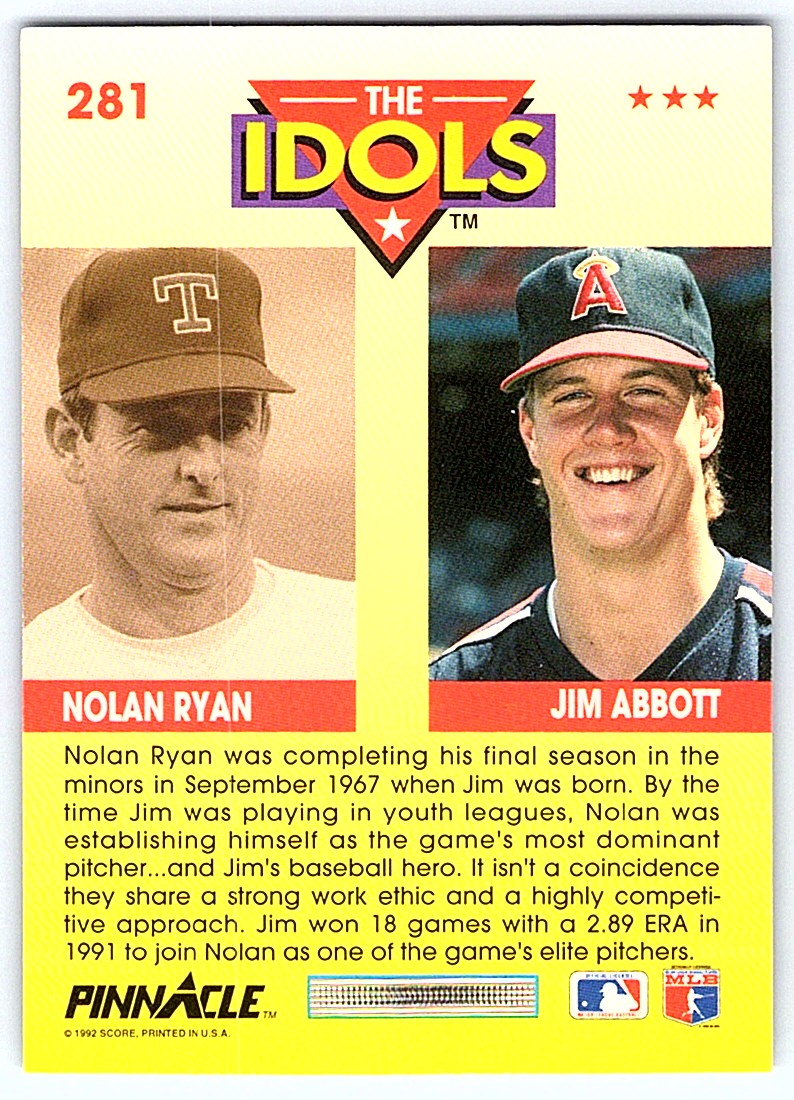 | 1992 Pinnacle Jim Abbott/Nolan Ryan California Angels/Texas Rangers #281 |