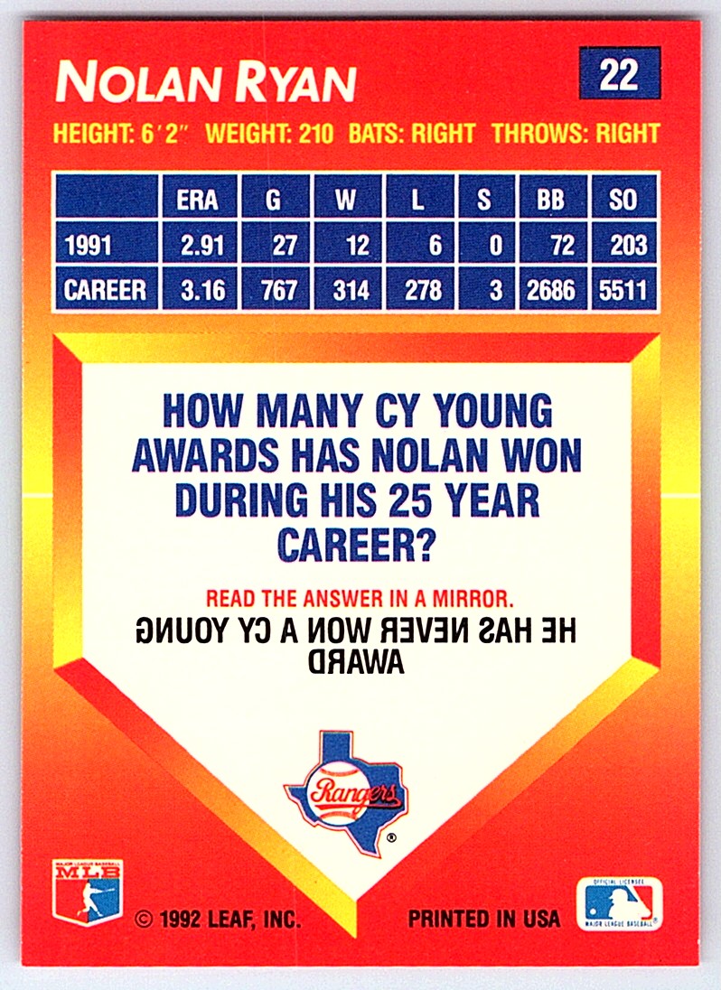 | 1992 Triple Play Nolan Ryan Texas Rangers #22 |
