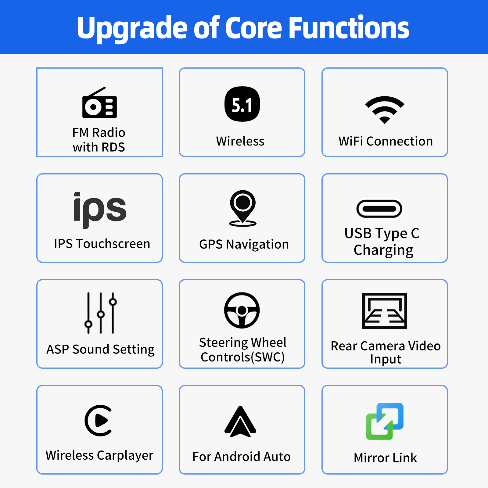 MIRROR LINK: With this car radio, you can experience the amazing Mirror Link function, compatible with iOS and Android phones. You can mirror your smartphone screen to the car radio using apps like Google Maps, Spotify, Youtube, etc. Replace your cell phone with the car screen and turn your vehicle into a smart platform.