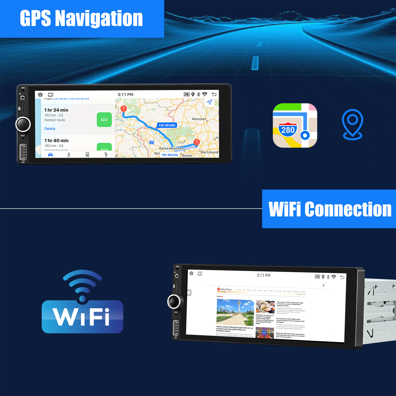 GPS Navigation & WiFi – Support WiFi connection. After connecting the WiFi, you can download any APP from App Store, e.g. B. Youtube, Tik Tok, Spotify, etc. Car stereo with GPS, accurate positioning, stable signal, support using online or offline maps, no longer worry about getting lost when you are driving. Independent antenna ensures strong WiFi reception.