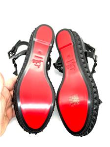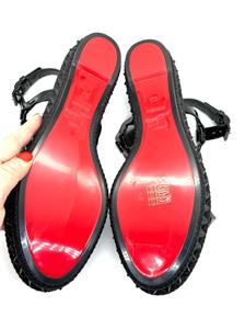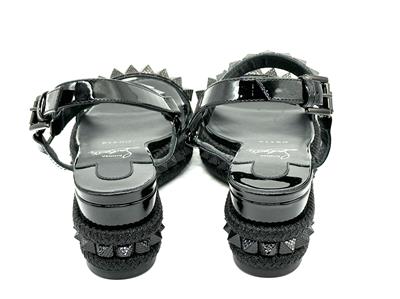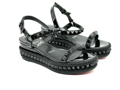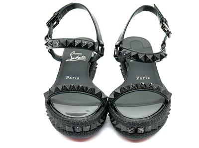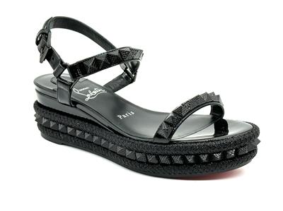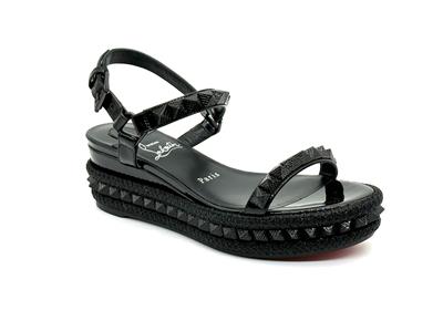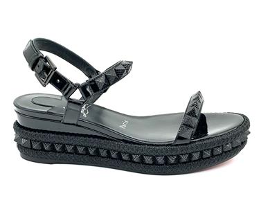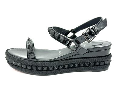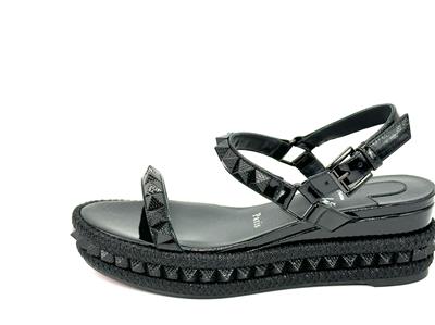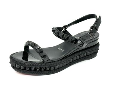 Made In Spain Pyraclou 60 Patent Leather Sandal With Tonal Hardware And Studs. Adjustable Ankle Strap With Buckle Closure. Lightly Padded Leather Insole. Rubber Sole. 2" Heel, 1.25" Platform.