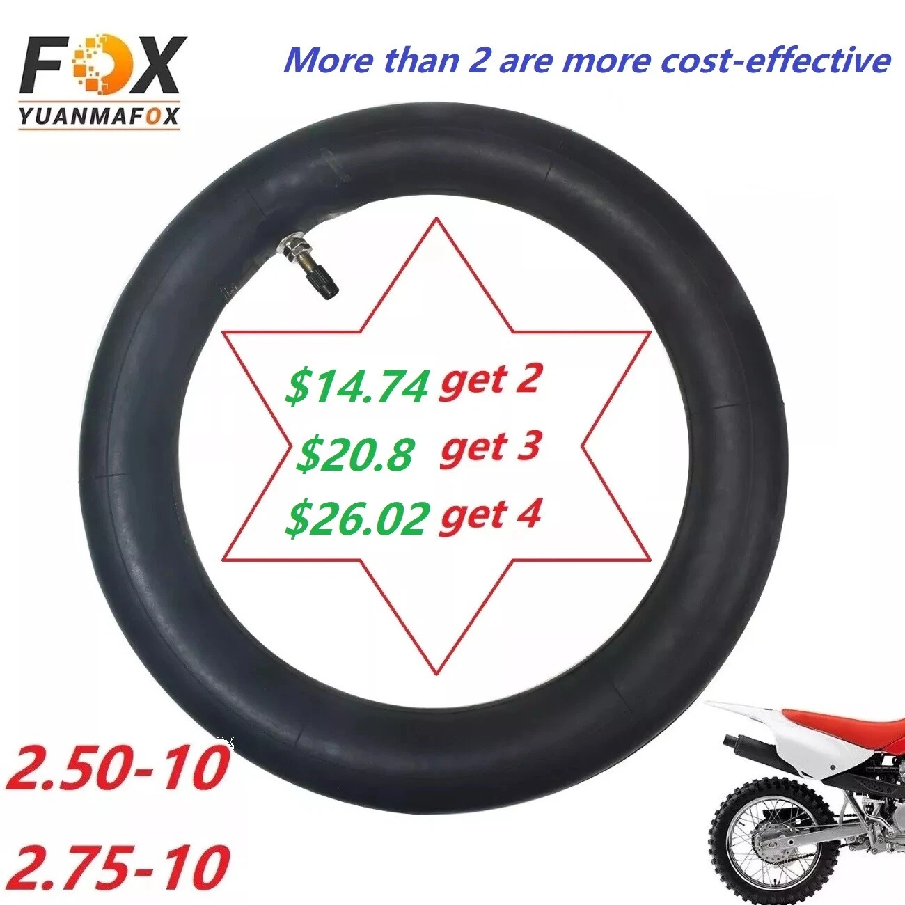 Package Include: 2 * Inner Tube(2.5/2.75-10)