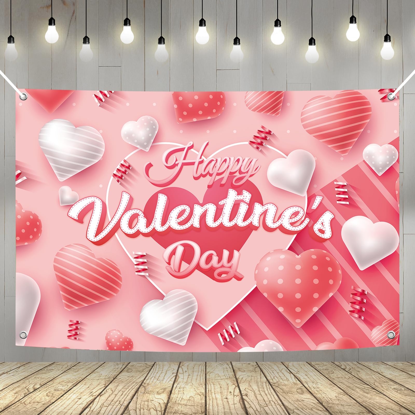 YQUQWN XtraLarge Happy Valentines Day - 72x44 Inch Banner for Party Decoration and Holiday Background