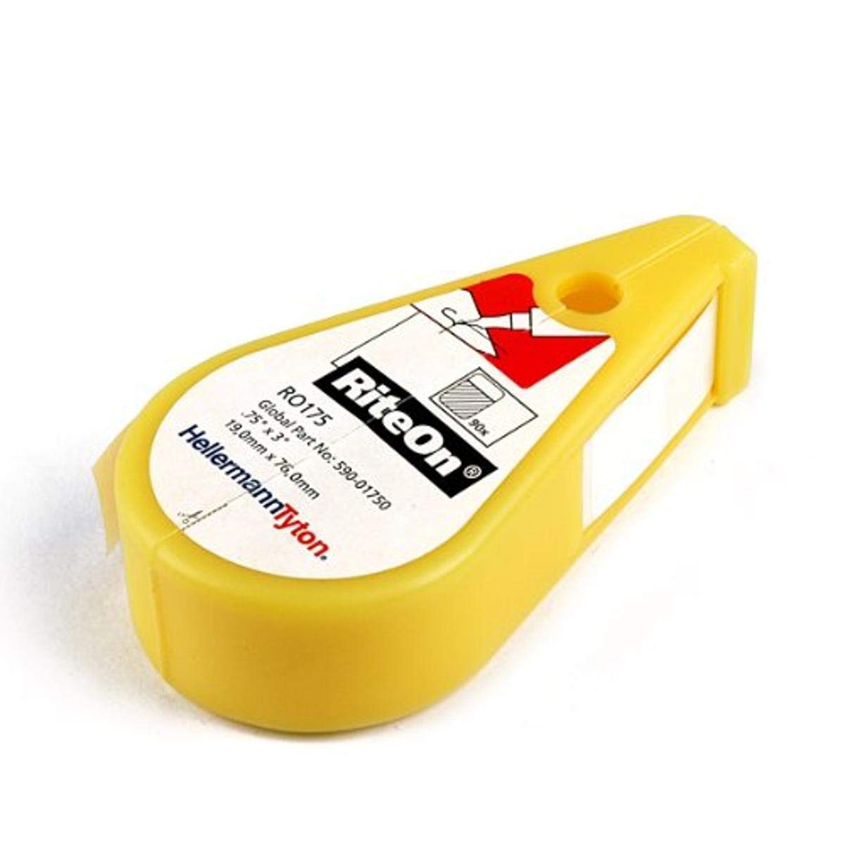 This HellermannTyton RO514 label dispenser supplies 1.25" long labels with a 0.75" wide x 0.375" high white vinyl surface on which customized wording can be written with a pen or marker. A clear vinyl tail section of the label overlays the written surface for weather resistance and seals permanently at temperatures above 50 degrees F. The UV-stabilized vinyl label with acrylic adhesive is weather-resistant and has an operating temperature range of -51 to +200 degrees F. This label dispenser complies with Restriction of Hazardous Substances (RoHS) regulations and is suitable for labeling wire or cable in a variety of environments.HellermannTyton manufactures cable identification and management products. The company, founded in 1969 and headquartered in Milwaukee, WI, meets International Standards Organization (ISO) standards 14001, 9001, and TS 16949.