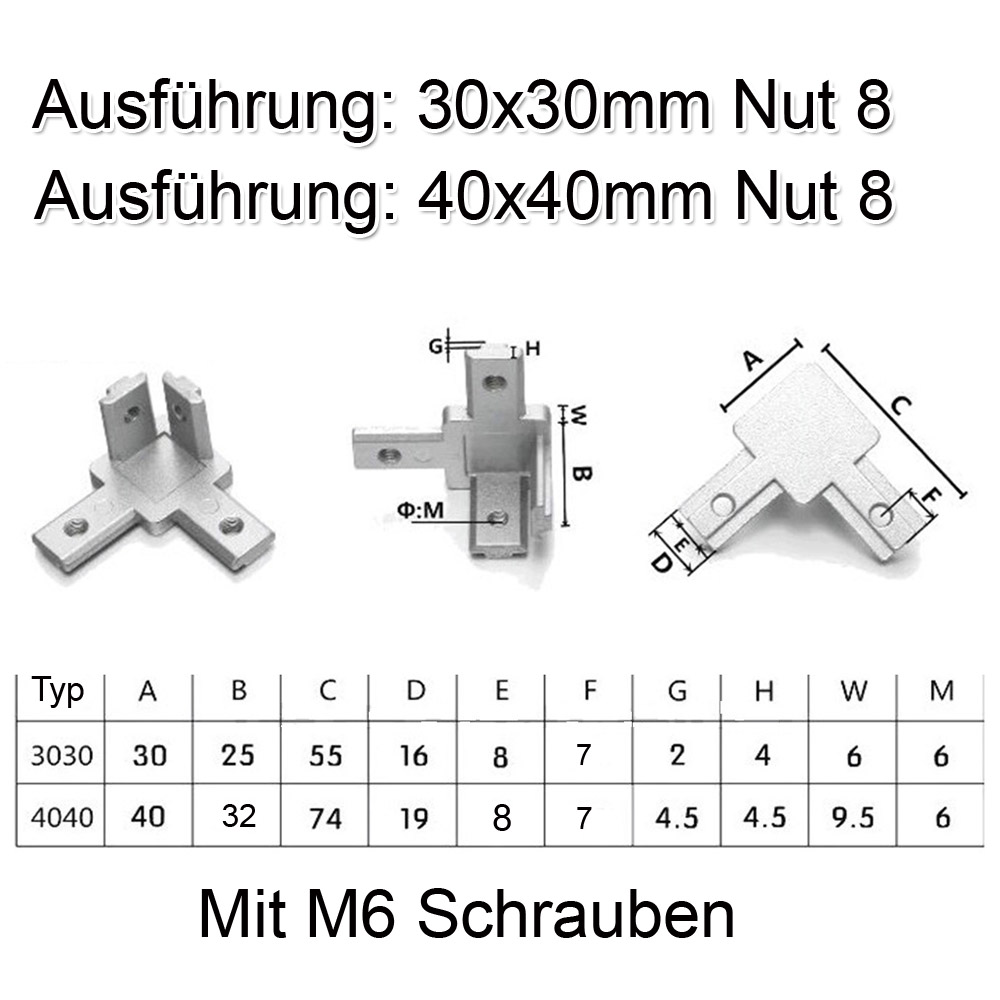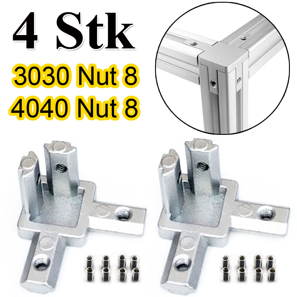 4 Set Eckverbinder 3-Weg 2020/ 3030/ 4040 Nut 8 Aluminium Profil Aluprofil Verbinder Eckwinkel