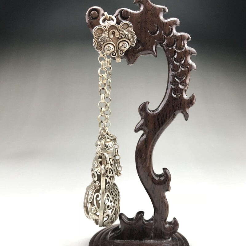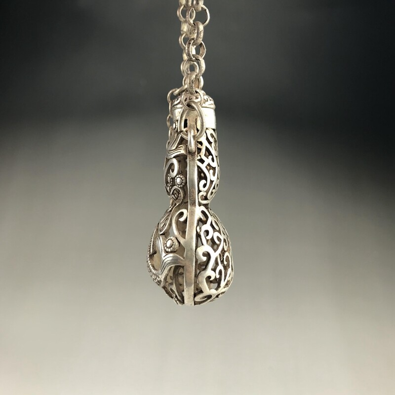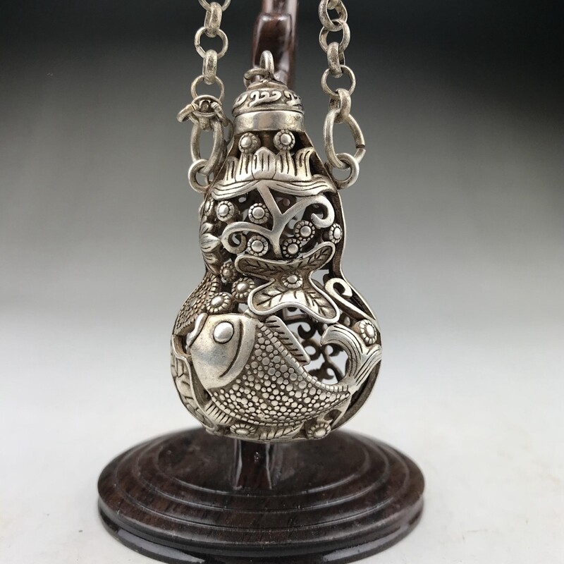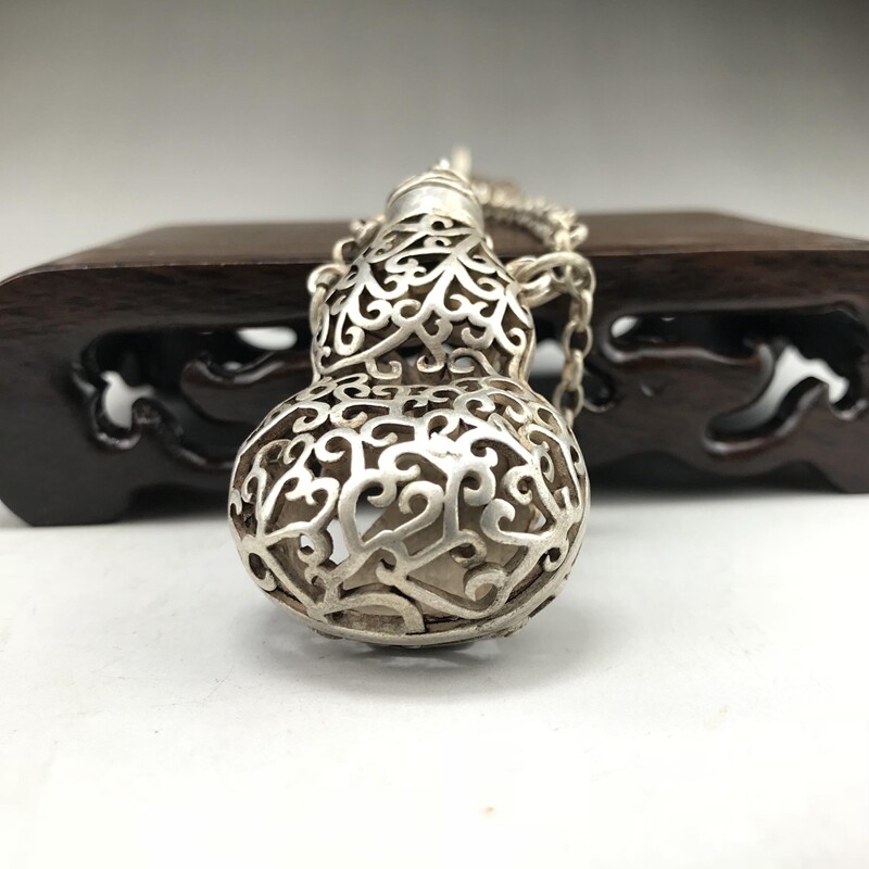 Chinese ancient Tibet silver hollow out snuff bottle hand carved gourd