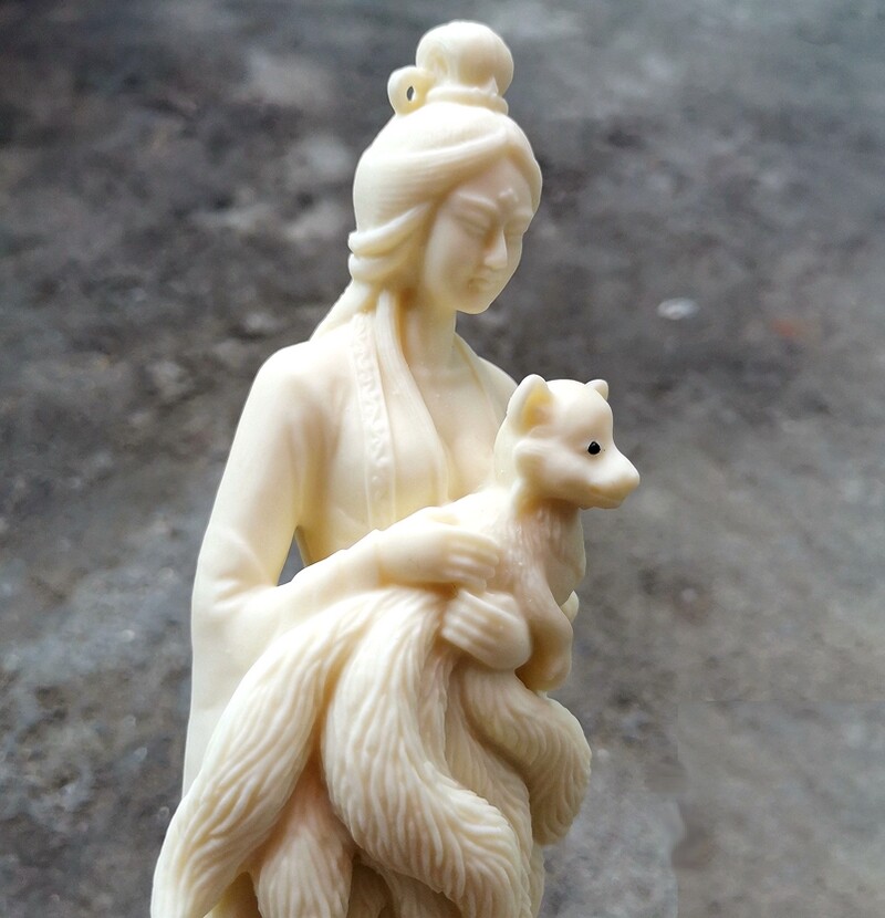 Tagua Nut Nine Tailed Fox Fairy Statue Marriage Love Feng Shui Decor Art Gifts